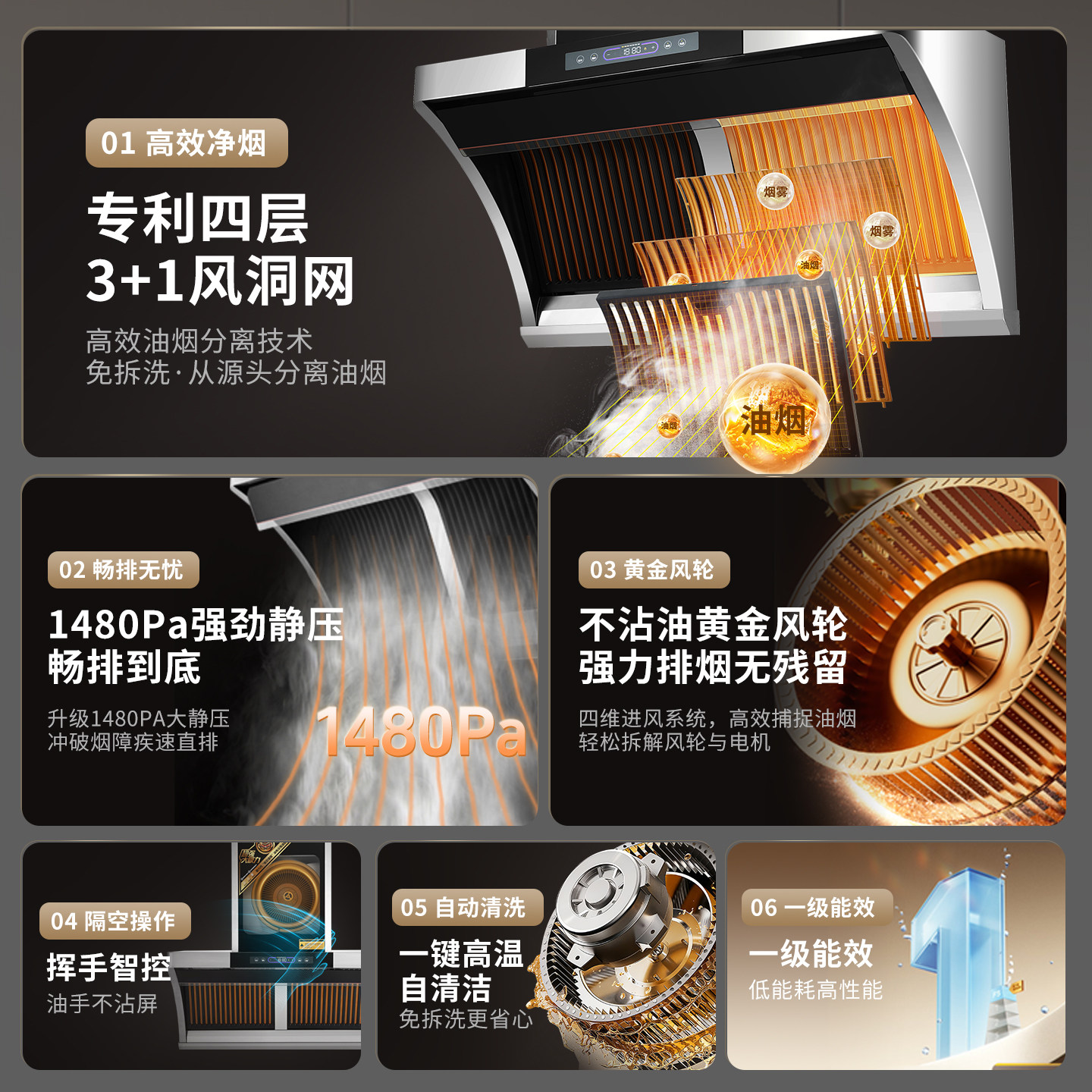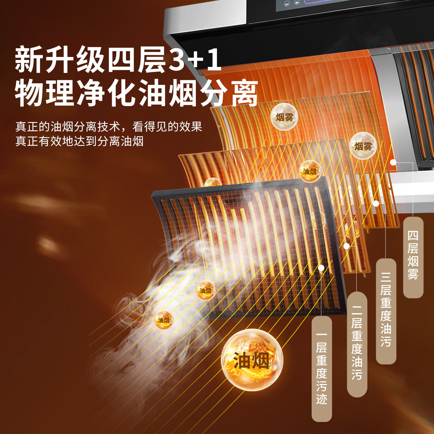 奥田美太油烟机家用厨房变频大吸力油烟分离物理净化免拆洗黄金眼