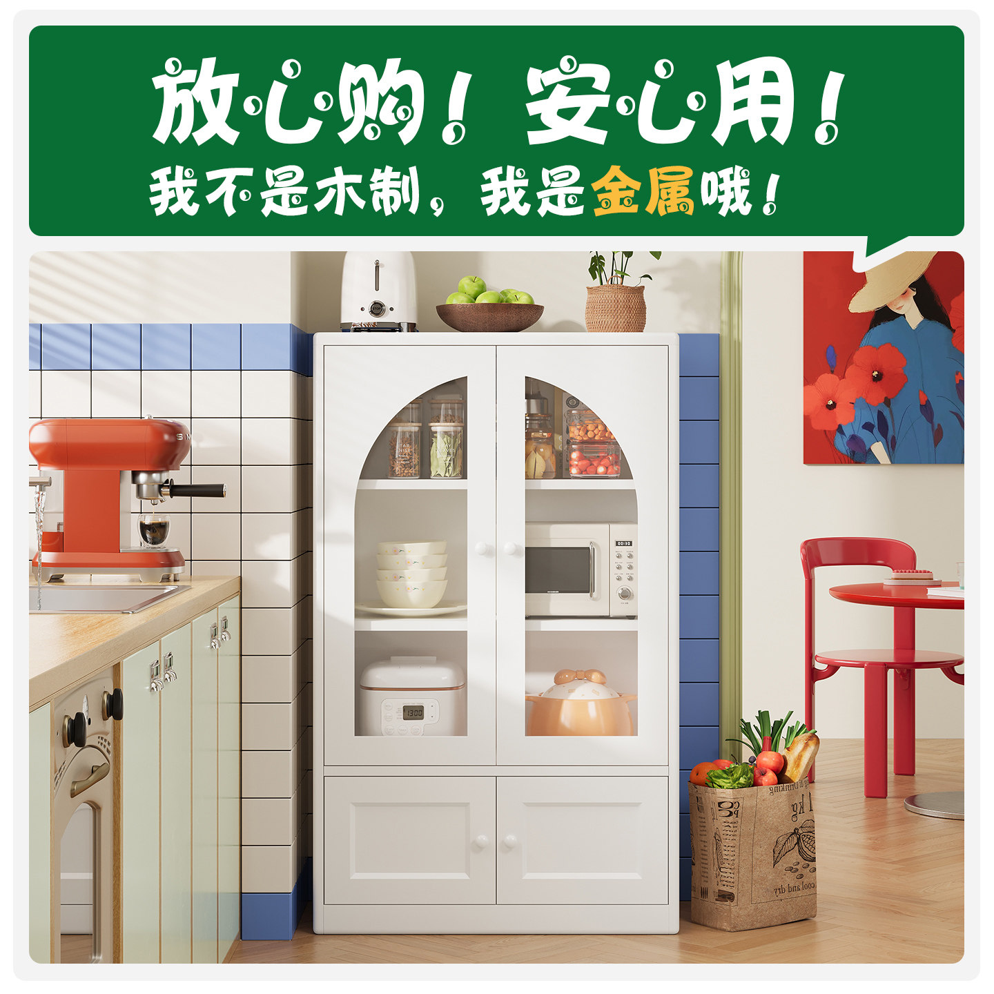 金属餐边柜2026新款适合客厅厨房灶台边橱柜钢制多功能储物柜边柜