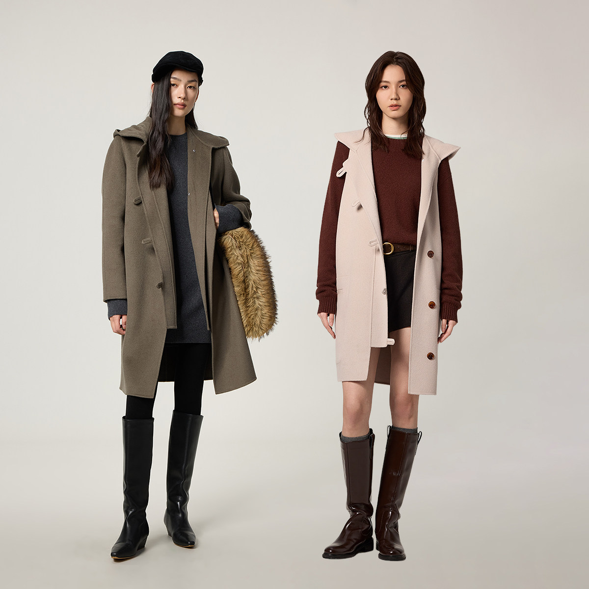 【所有女生的衣橱直播间】航邦祺韩系双面经典四粒扣中长款大衣
