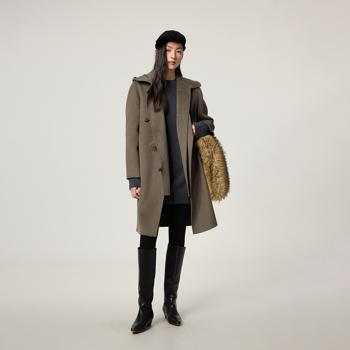 MPAM绵羊毛羊绒双面呢大衣时尚气质立领羊毛外套女
