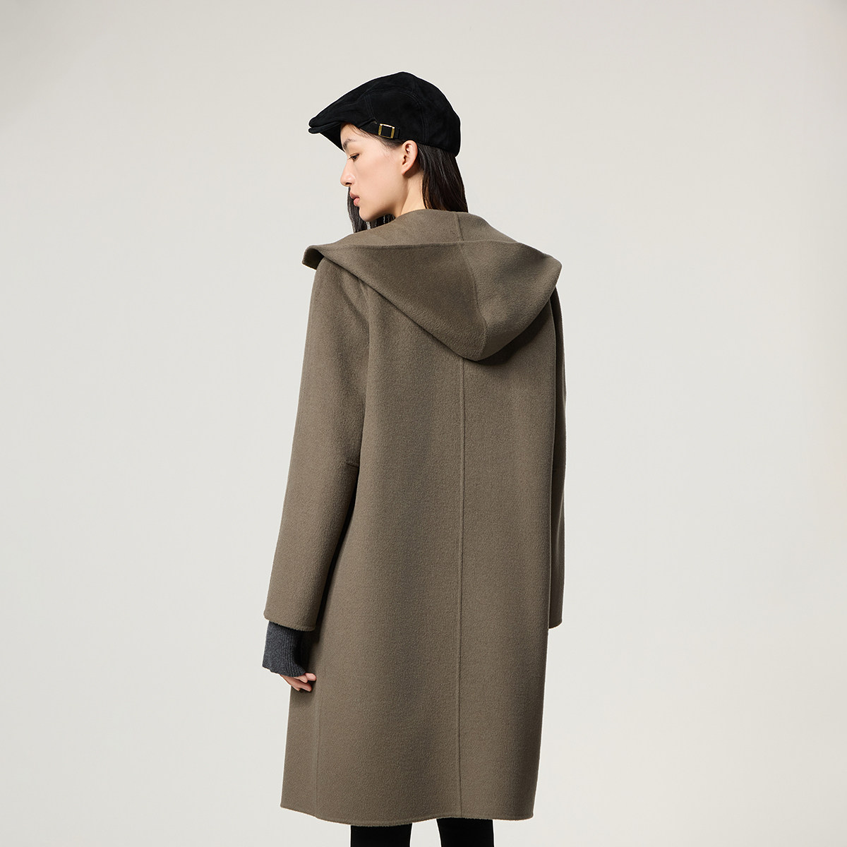 RUISHI芮时重磅驼绒桑蚕丝羊毛慵懒两穿领灰色毛呢大衣秋冬外套女
