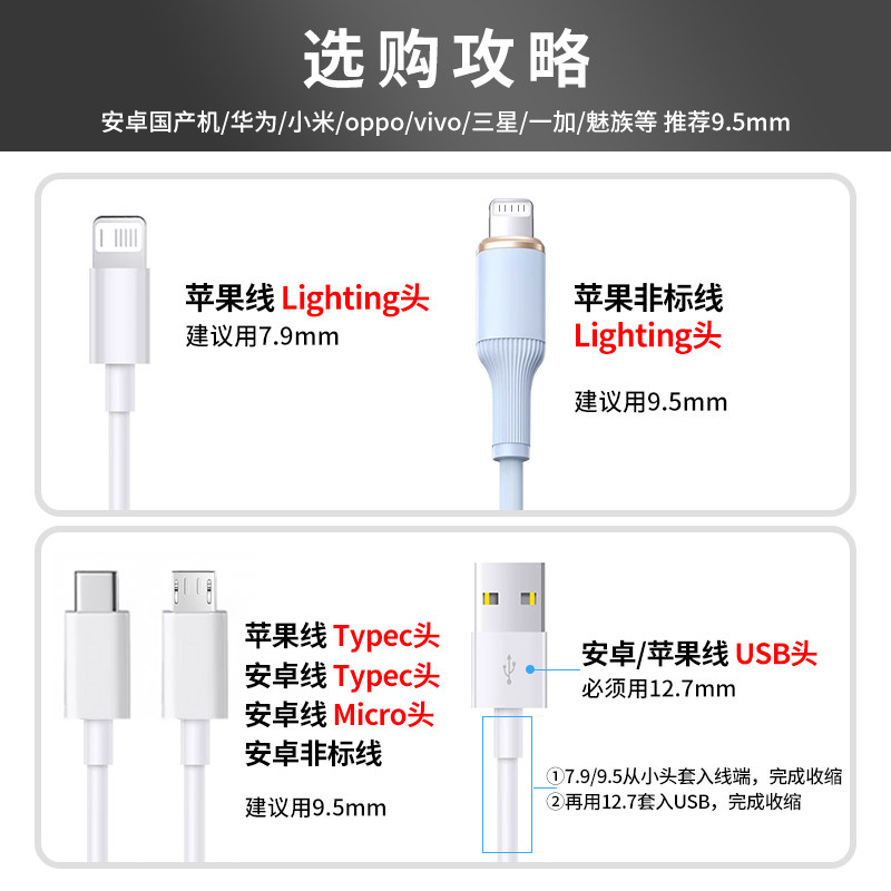 数据线保护套充电线修复神器热缩管适用苹果16promax华为安卓typec手机20w快充充电头ipad小米oppo防折断通用