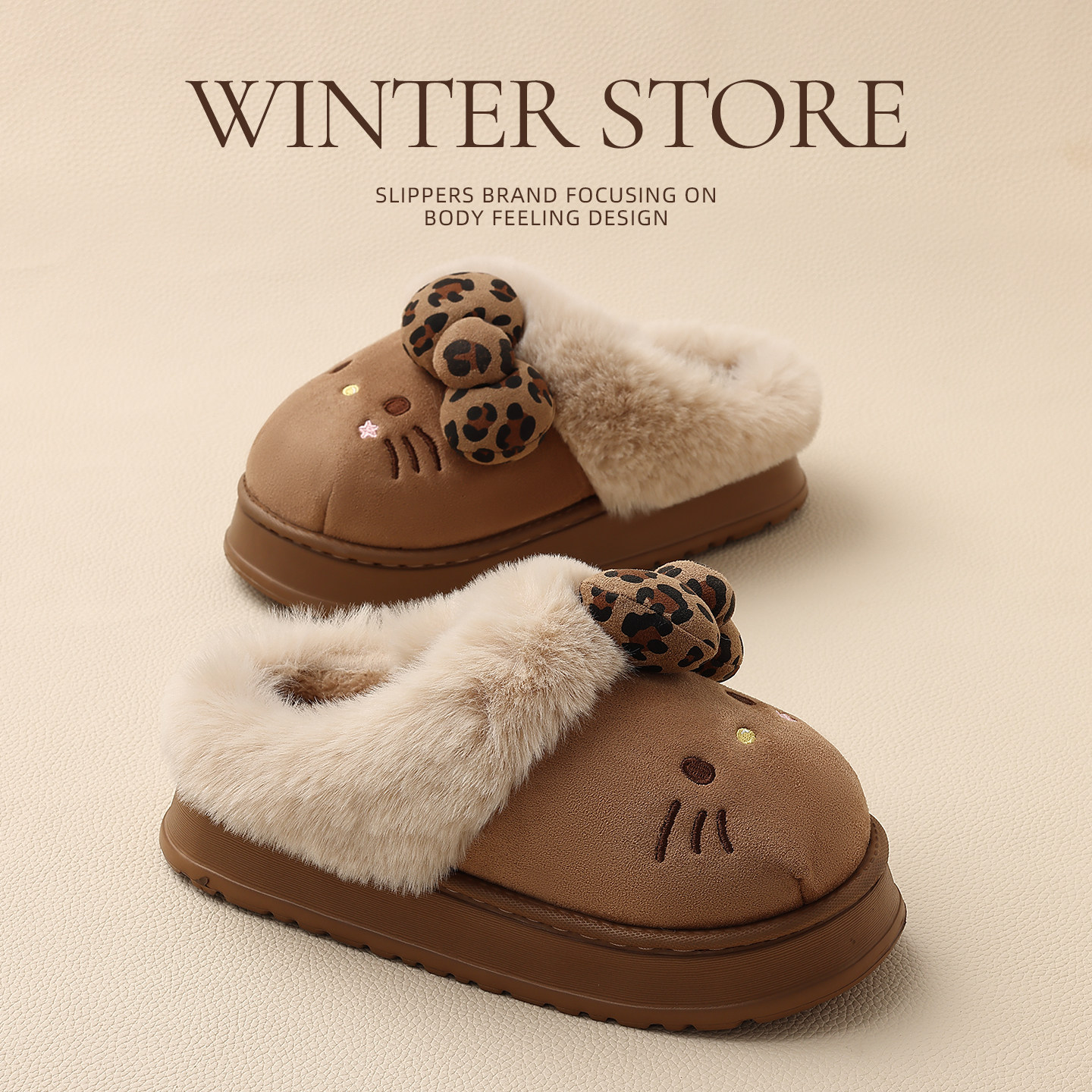 kt猫棉拖鞋女款2025新款冬季包跟室内家居保暖厚底毛毛加绒棉鞋女