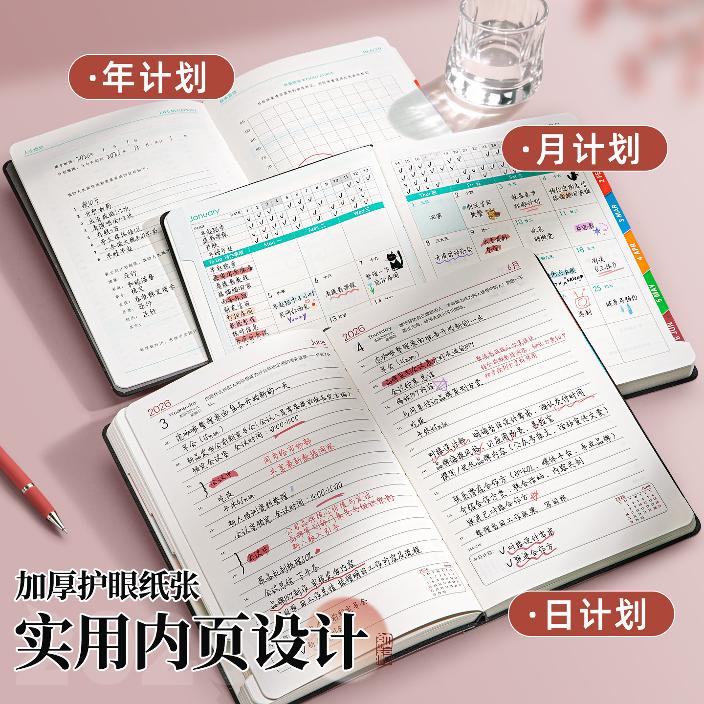 2026全年日程本计划表新款定制笔记本子工作日志日记本日历记事本自律打卡效率手册时间管理手账高颜值ins风