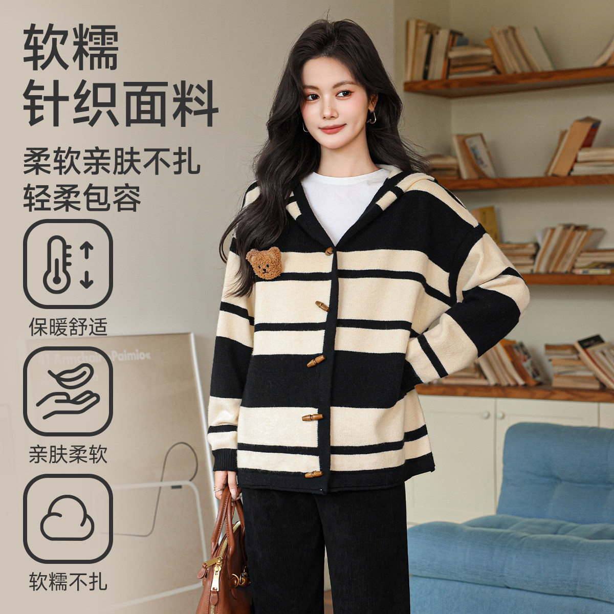 婧麒秋冬孕妇套装新款孕期孕妈高级感孕妇装连帽上衣裤子孕妇秋装
