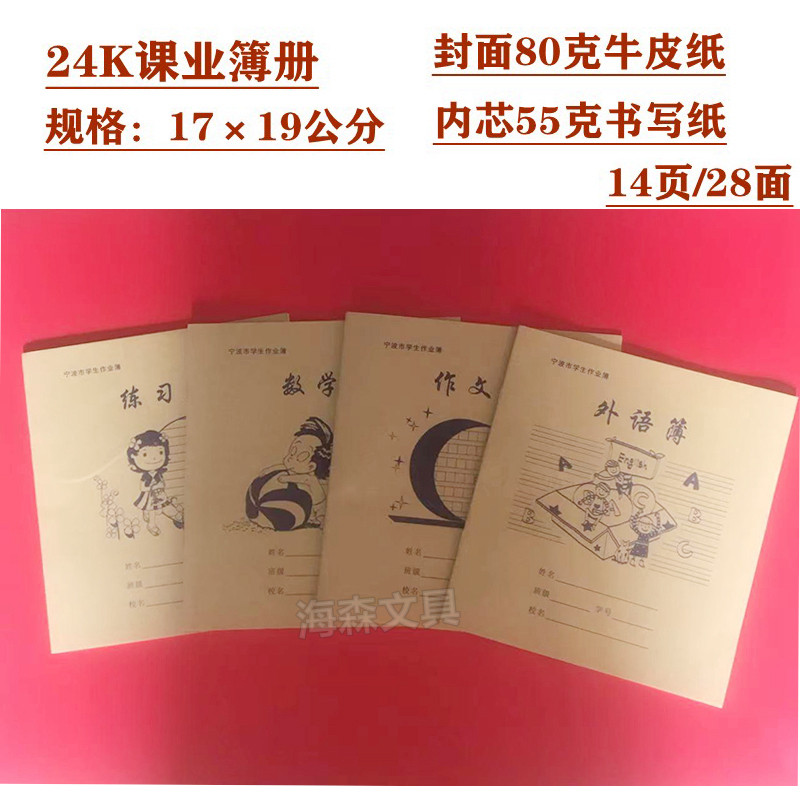 宁波市统一校簿小学生本3-6年级作业本英语练习薄24K外语数学作文