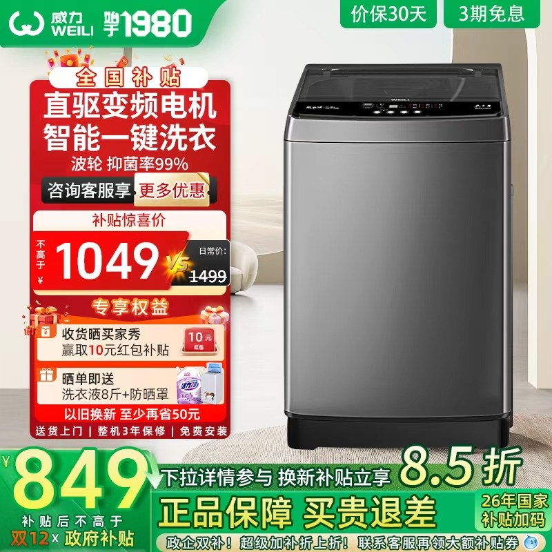 [以旧换新]威力直驱变频10公斤波轮洗衣机全自动家用大容量1929D