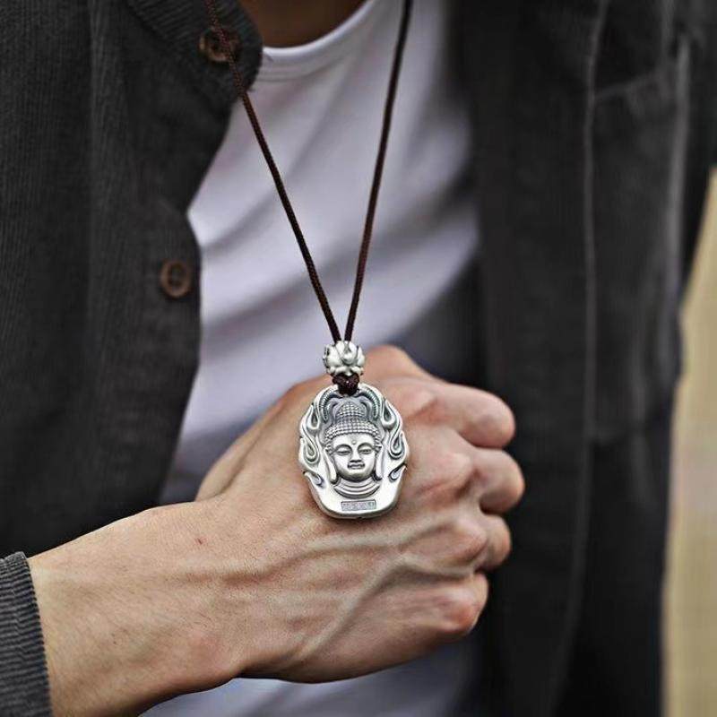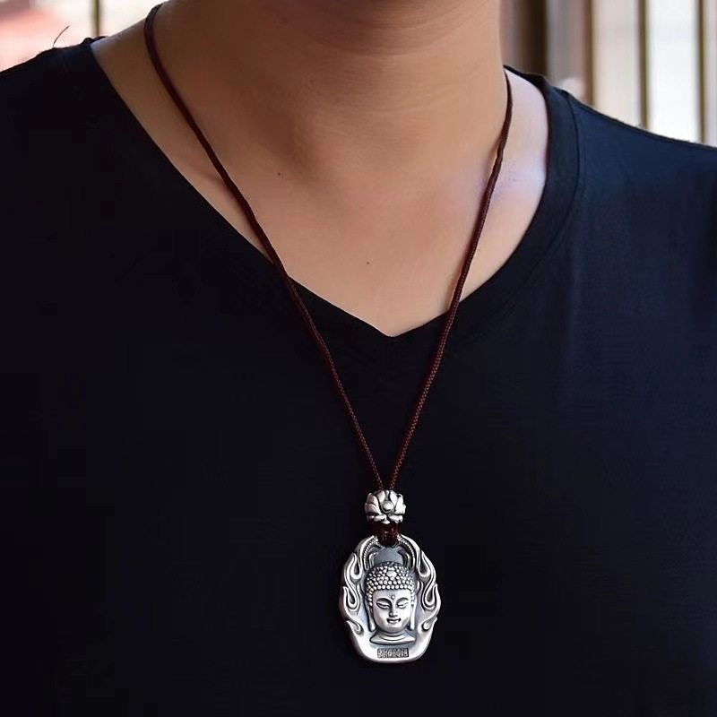 八大守护神吊坠男十二生肖本命年六字真言项链镀银纯银