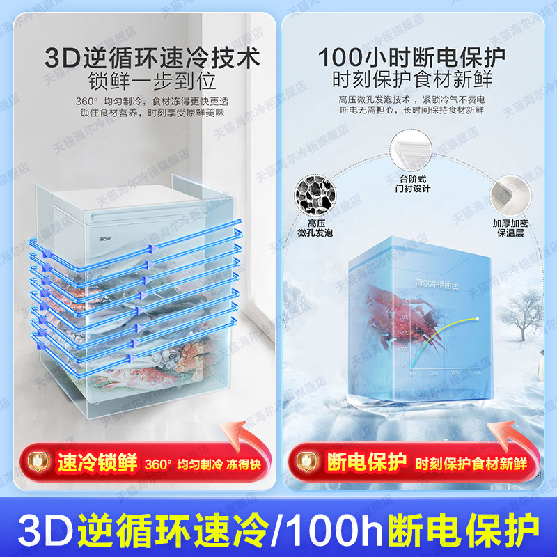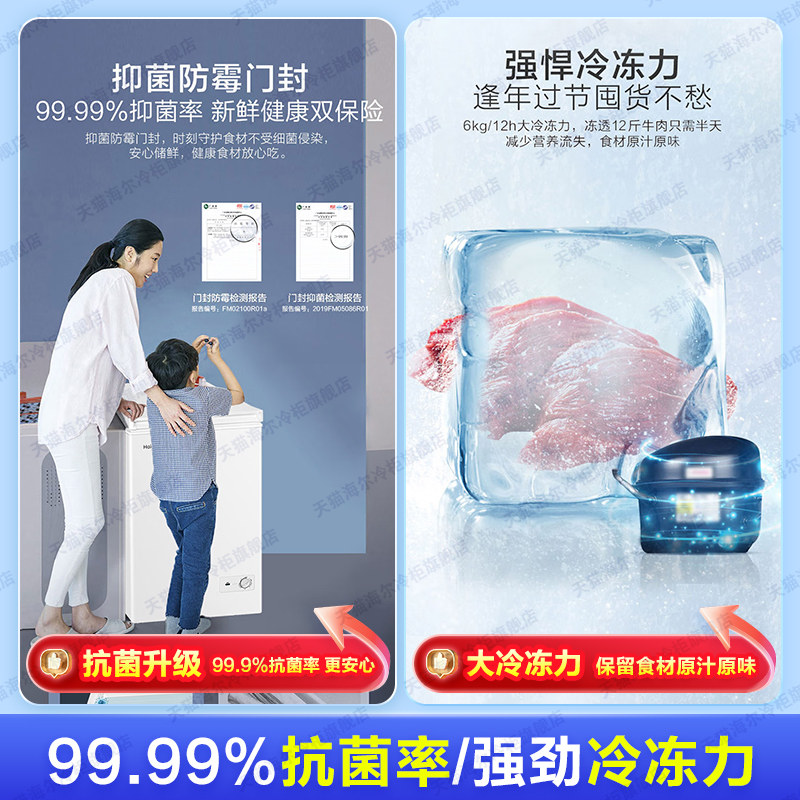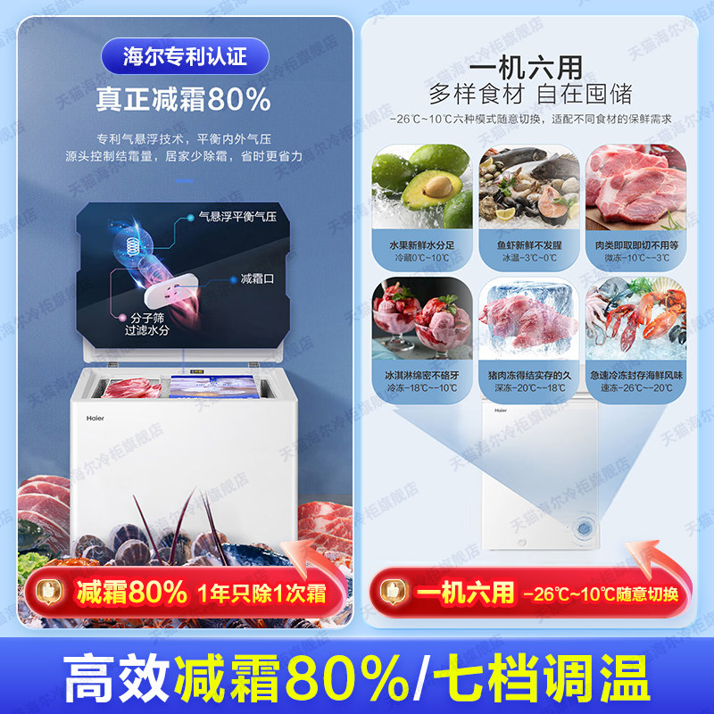 海尔冰柜100/200L家用小型一级商用速冻冷藏冷冻减霜两用冰箱冷柜