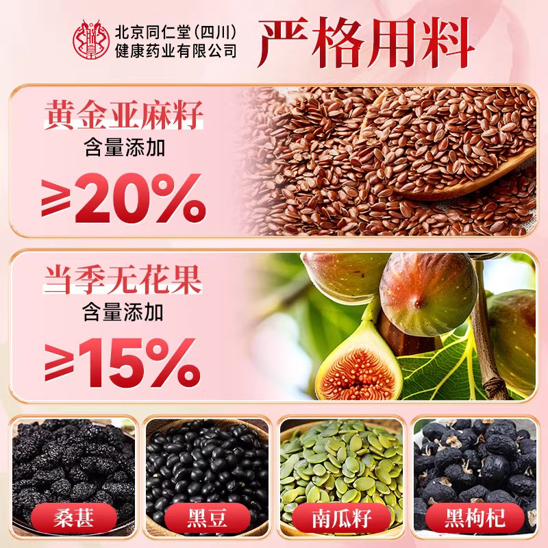 北京同仁堂亚麻籽无花果桑葚茶黄体酮种子循环黑豆枸杞养雌养生茶