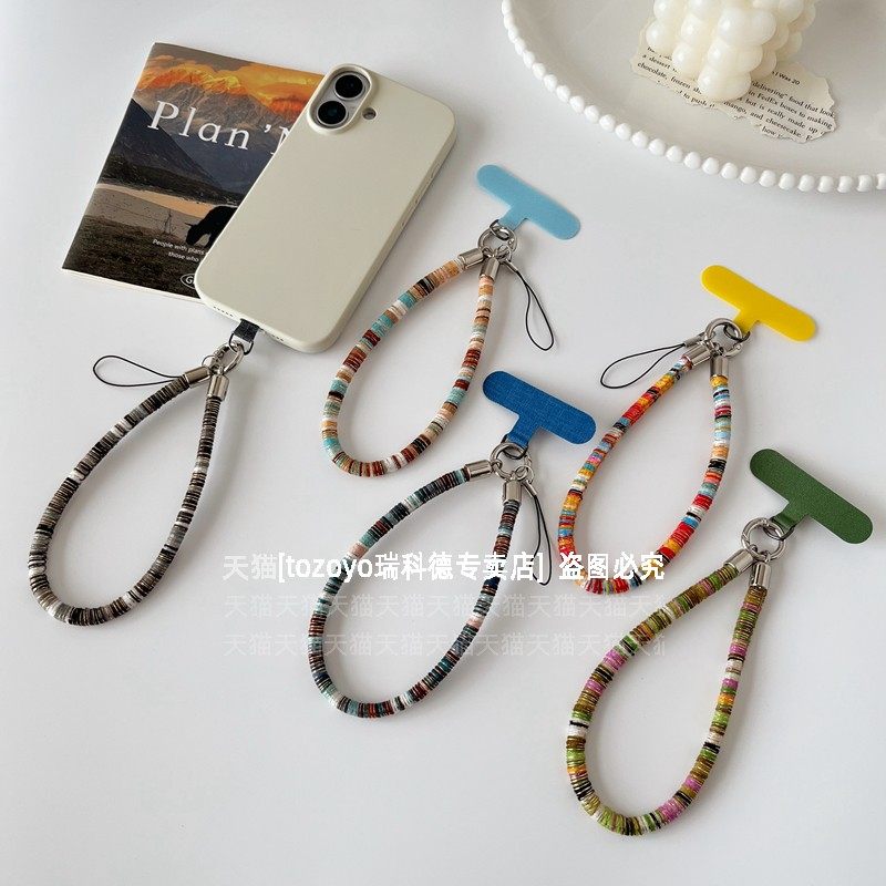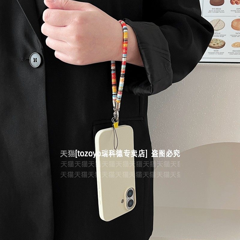 波西米亚风手机挂绳度假旅游防丢手腕绳高端金丝绒手绳ccd背包钥匙扣耳机u盘彩色腕带挂件链垫片结实diy挂饰