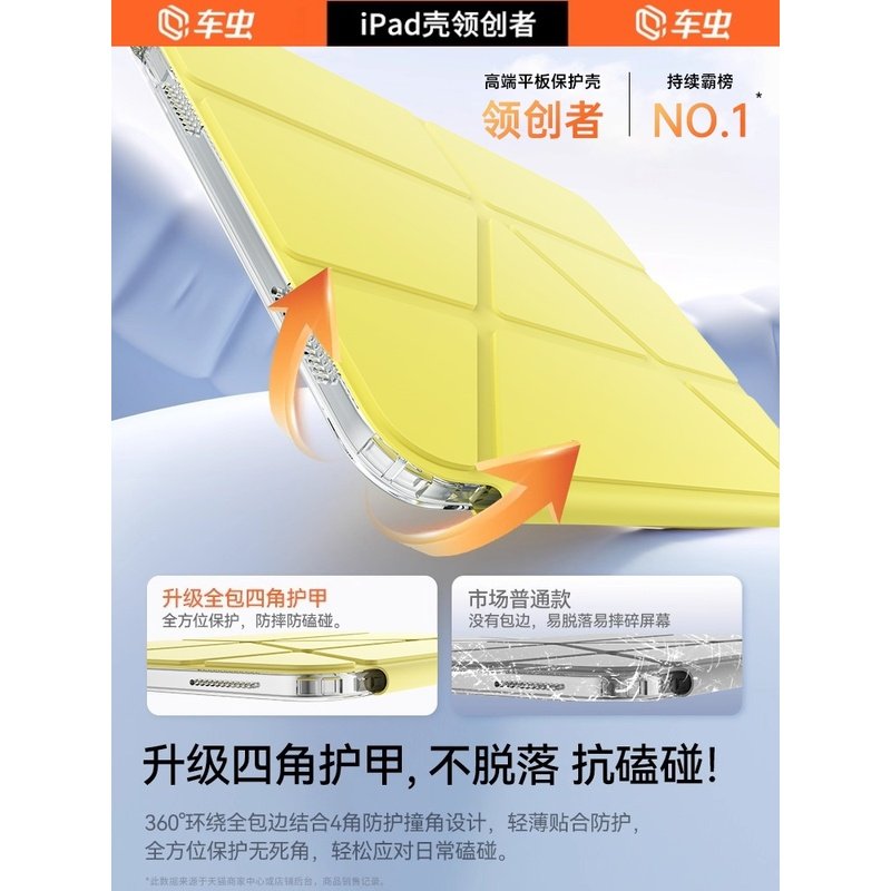 车虫适用iPad保护壳iPad11保护套Air7透明9平板iPadPro2025新款5第10代11寸6苹果8防弯3摔3y折4带笔槽mini十2