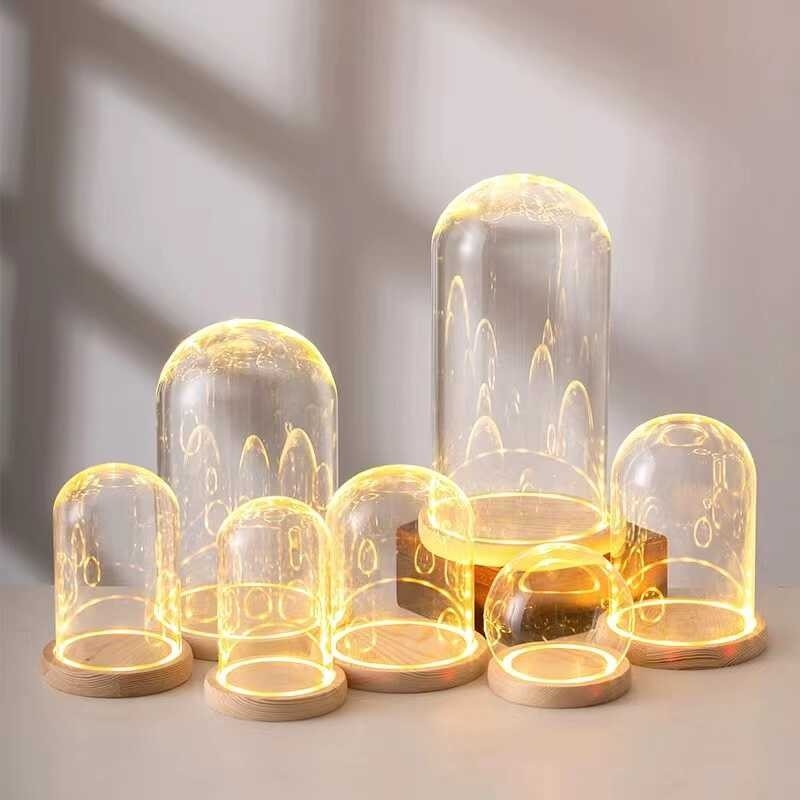 永生花原木槽灯发光底座玻璃防尘罩玫瑰装饰人偶手办摆件桌面球形