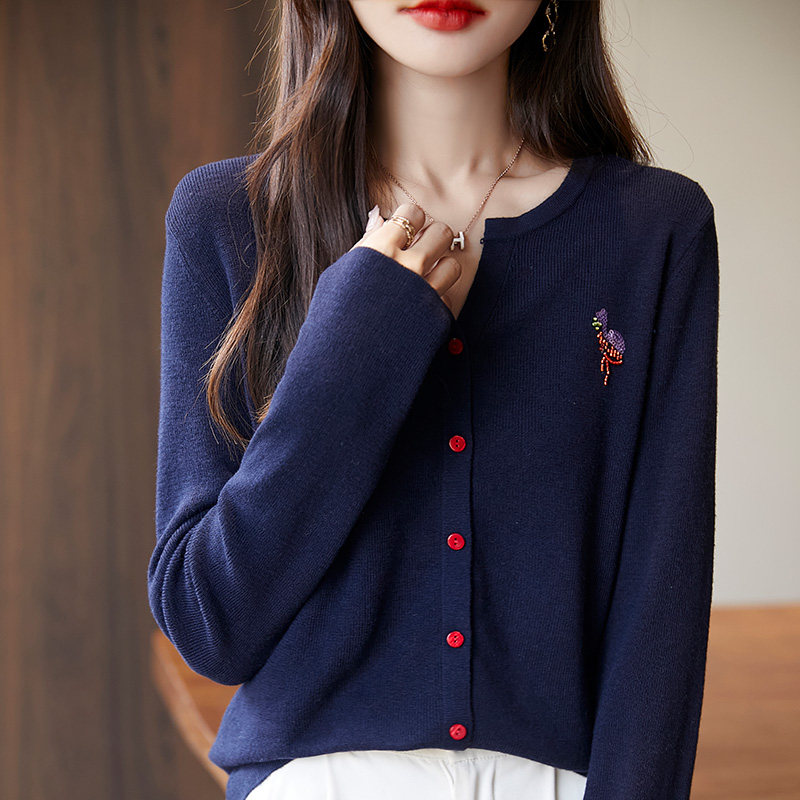 春秋薄款羊毛针织开衫女韩版圆领宽松短款羊绒衫外搭毛衣外套上衣
