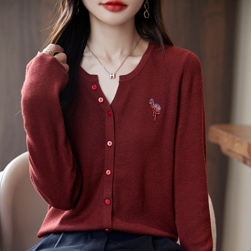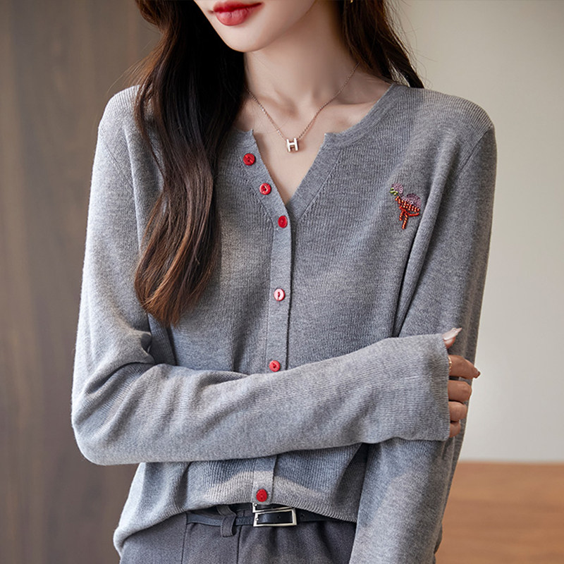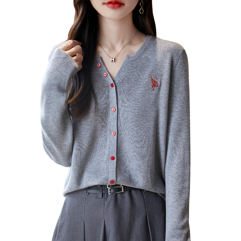 新款羊毛开衫外套女针织打底衫V领2025年春季羊绒外搭短款毛衣女
