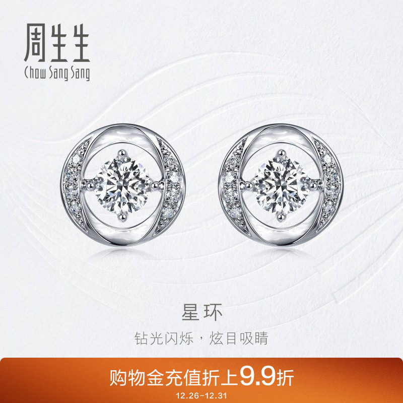 周生生18K白色黄金钻之颂永恒之颂星环钻石耳钉93311E