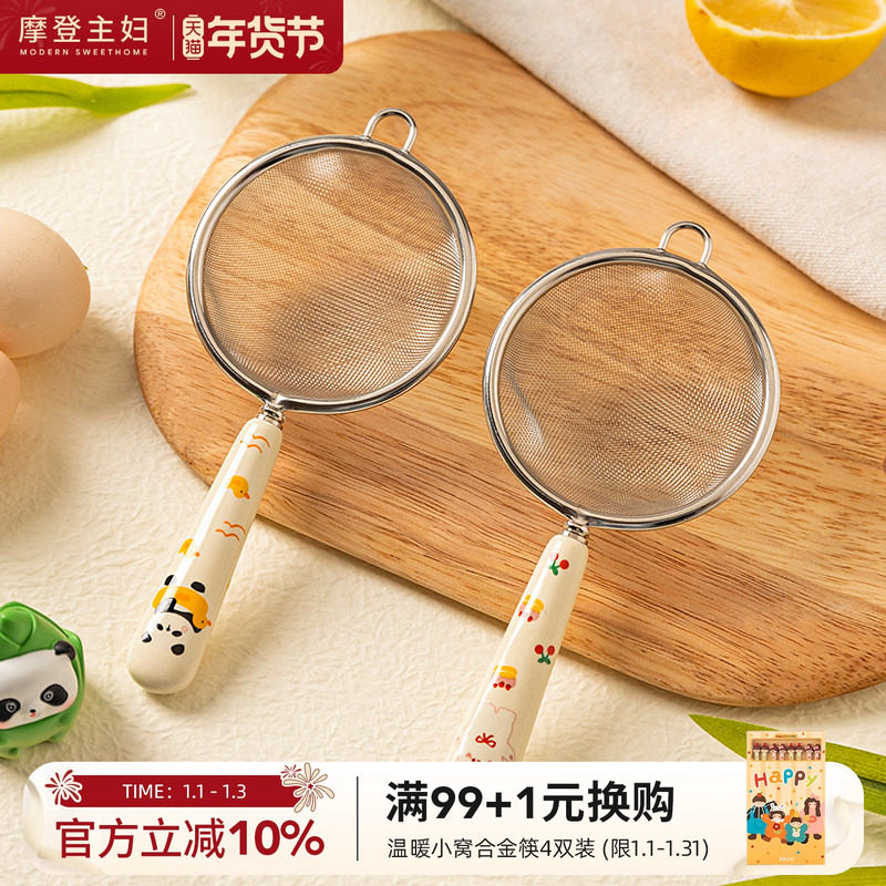 摩登主妇不锈钢过滤网筛婴儿辅食工具面粉筛果汁米油豆浆滤网漏勺