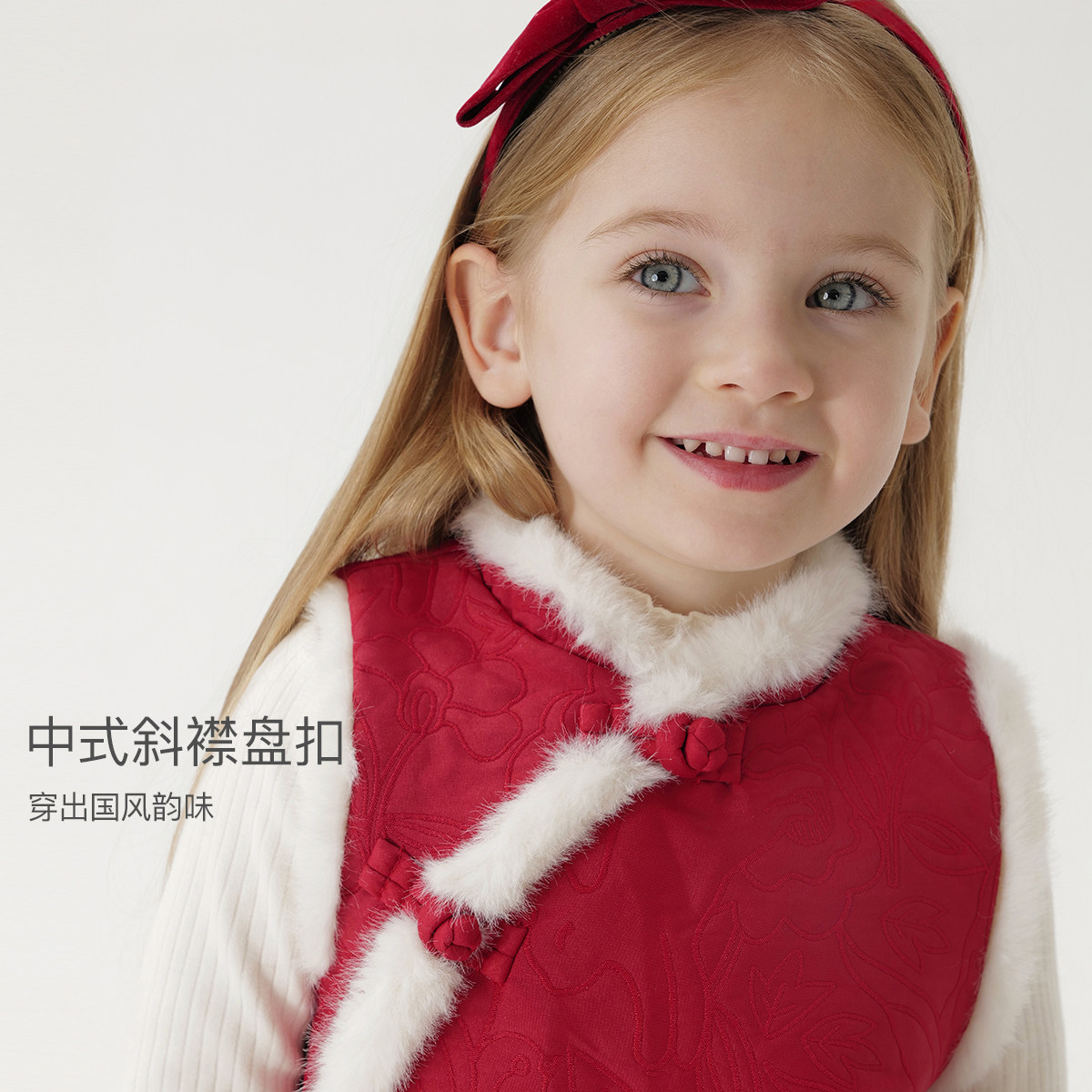 仿兔毛领拼接,中式充棉盘扣,满底精致压花