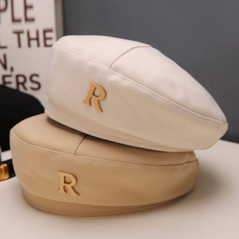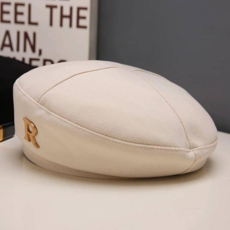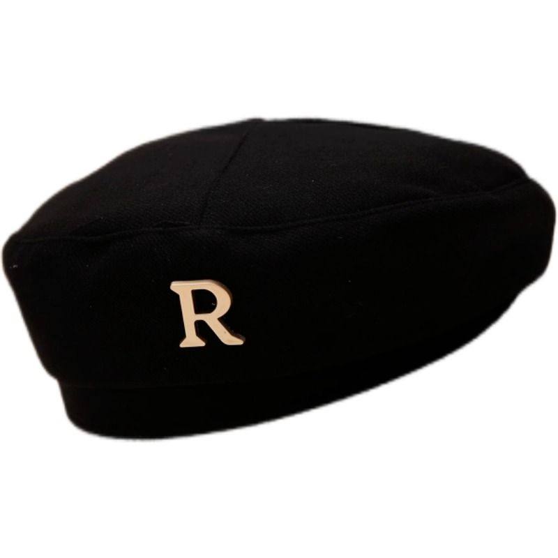 黑色新款贝雷帽女春秋款2023显脸小八角蓓蕾帽子春天平顶手工帽檐