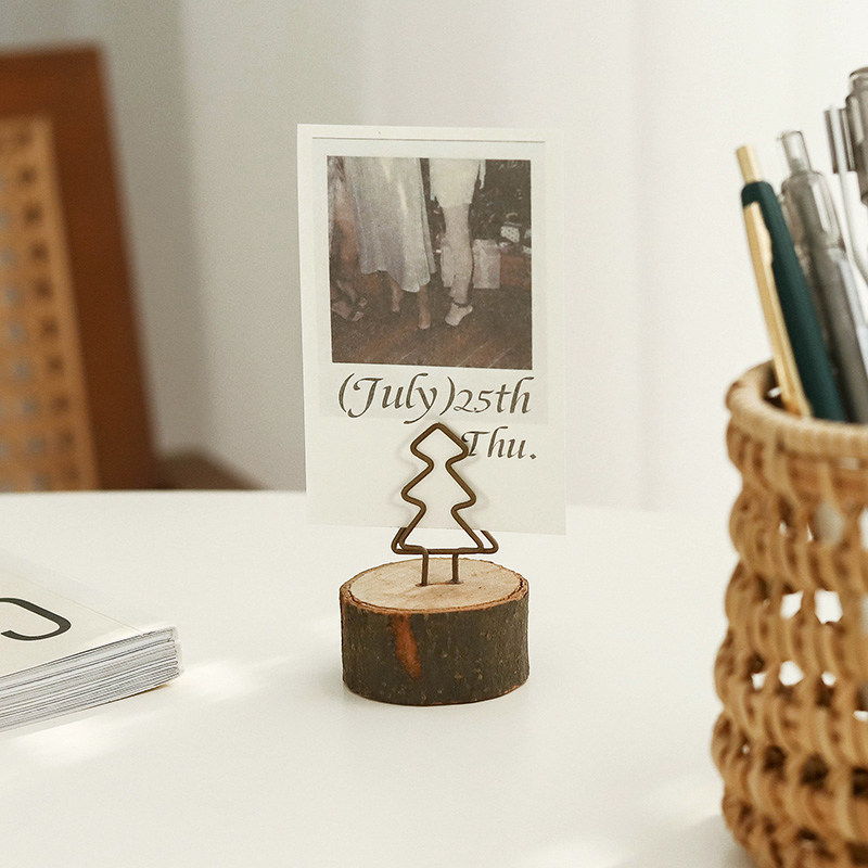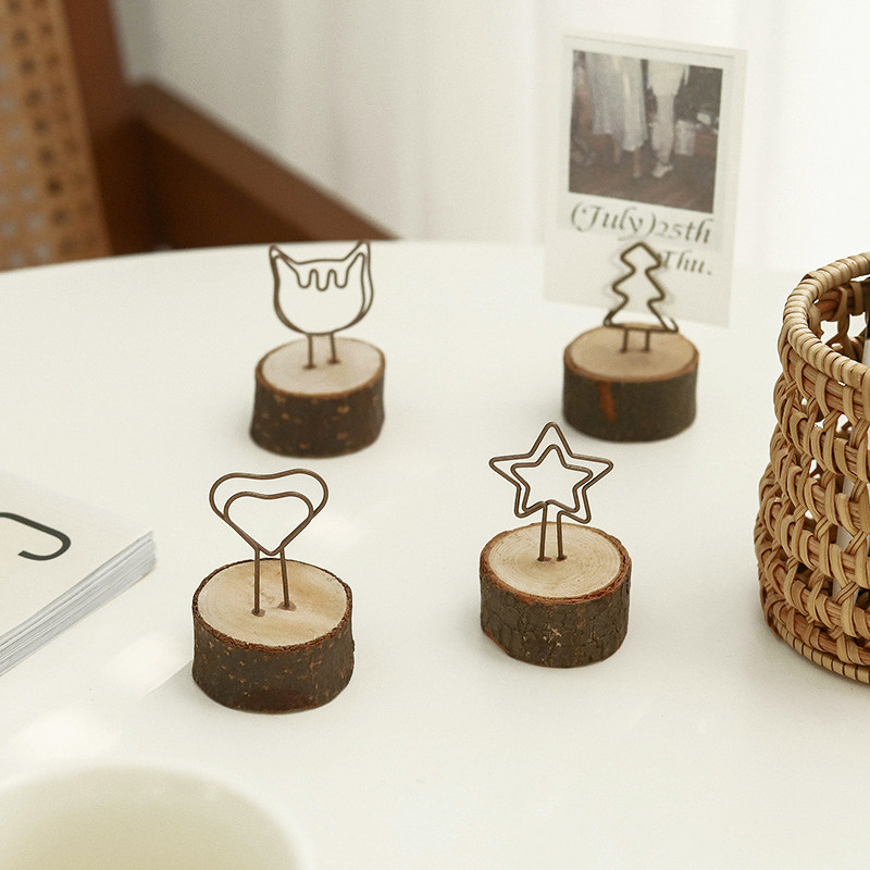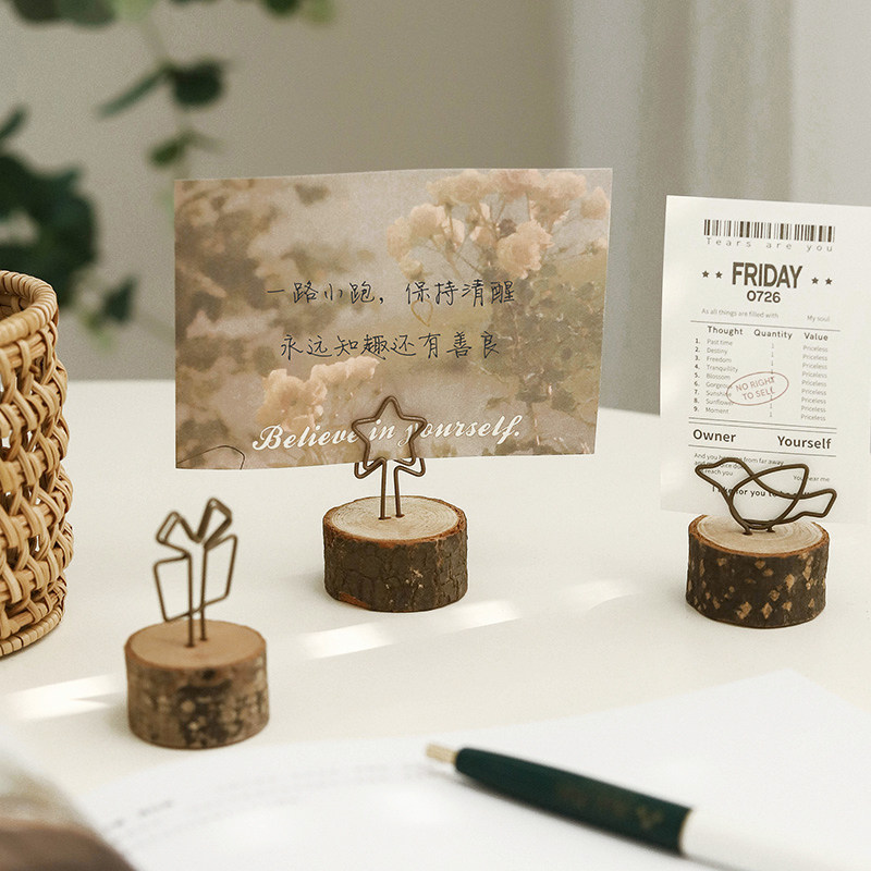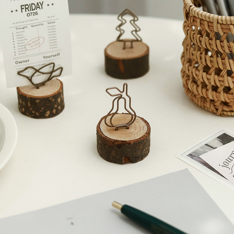 复古木质树皮便签夹 创意铁艺家居立式留言夹 桌面实木装饰夹摆件