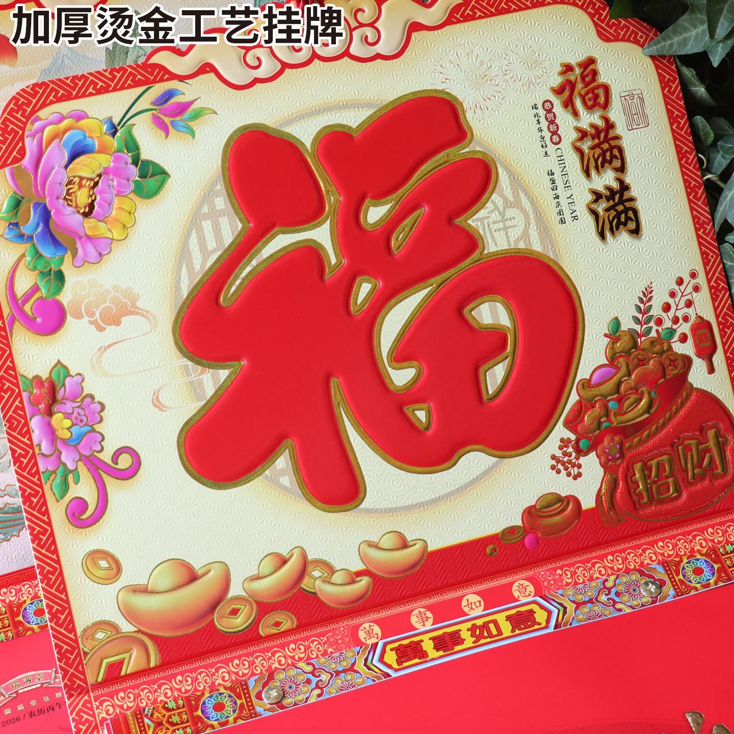 2026马年皇历 日历家用挂墙彩色九开手撕铜版纸 黄历定制广告批发