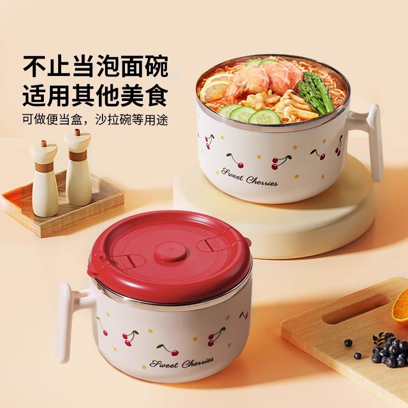带盖新款泡面碗宿舍大容量个人专用学生上班族食品级不锈钢碗