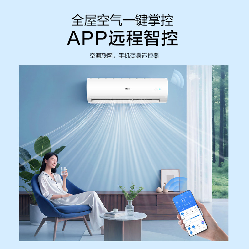 【纯铜管】海尔空调1.5匹1匹一级变频冷暖卧室挂机净省电E1旗舰店
