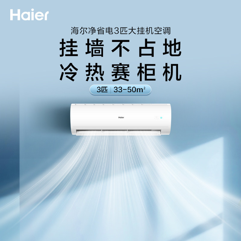 【3匹大挂机】海尔空调净省电3匹变频冷暖新一级家用卧室挂机空调