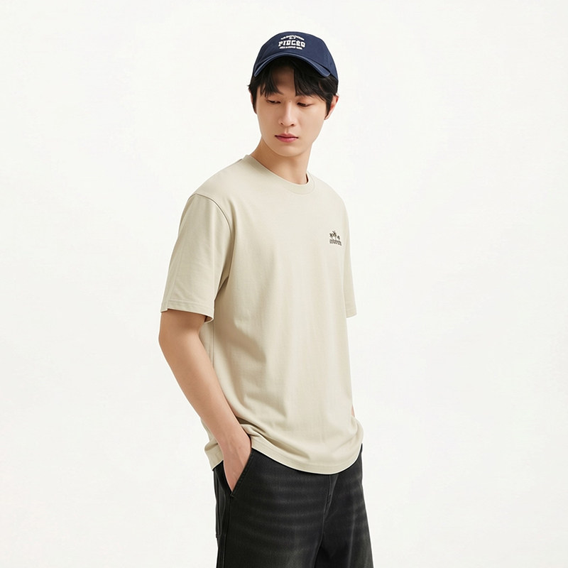 【春上新系列凉感】杰克琼斯男装新款纯色打底衫刺绣短袖男款T恤