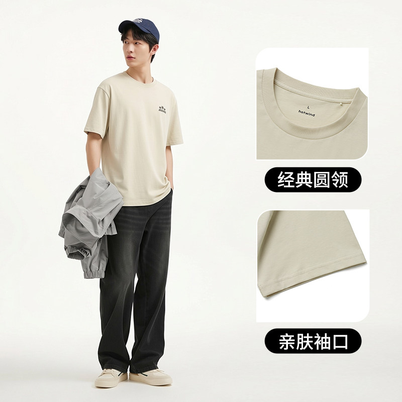 森马短袖T恤男纯棉打底衫修身长袖25夏季新款纯色内搭上衣简约白