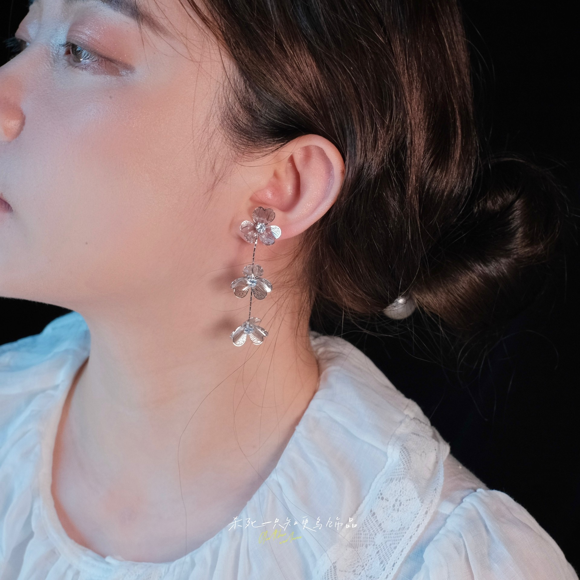 茉莉清香~夏日白色花朵流苏耳环2025新款夸张海边度假风耳饰耳夹