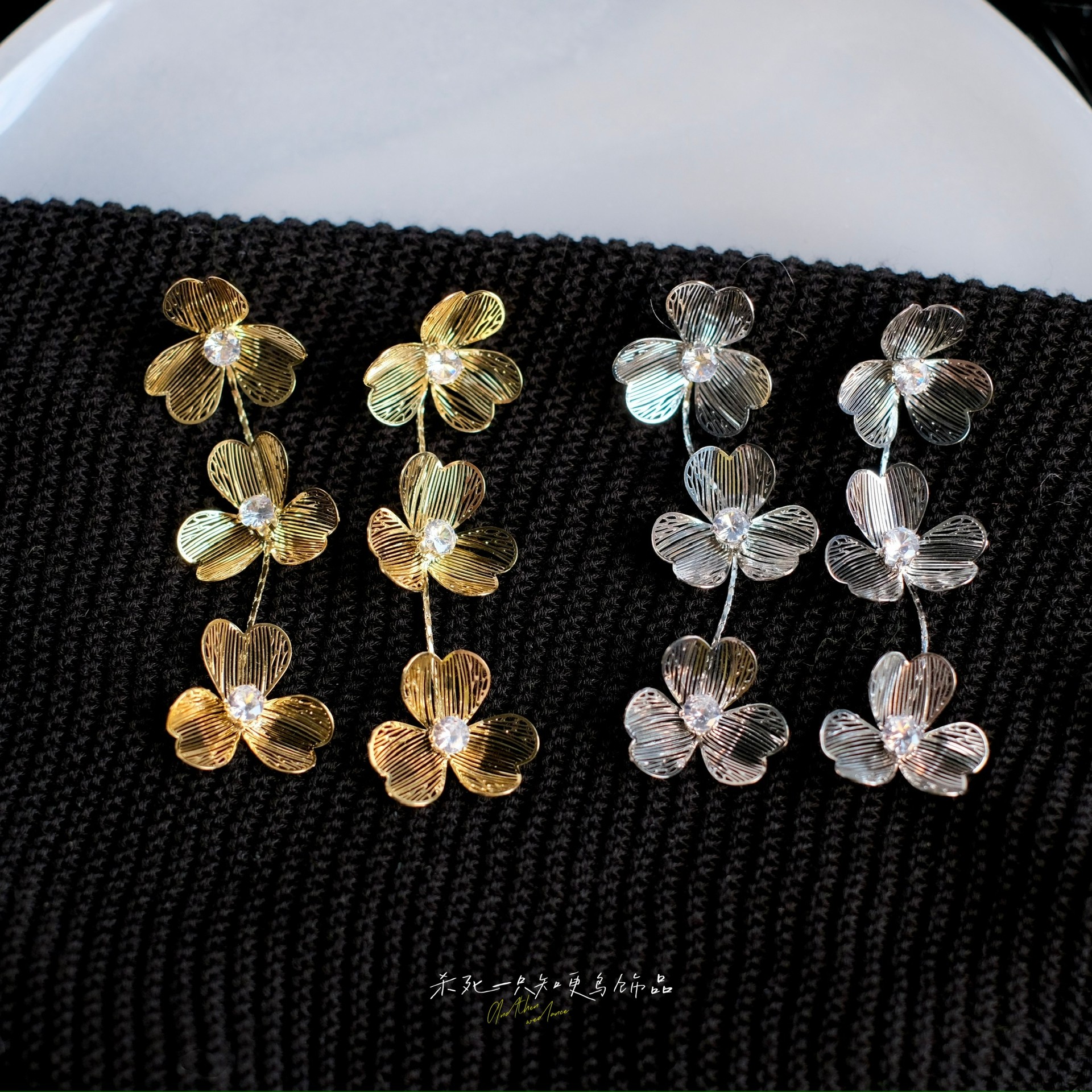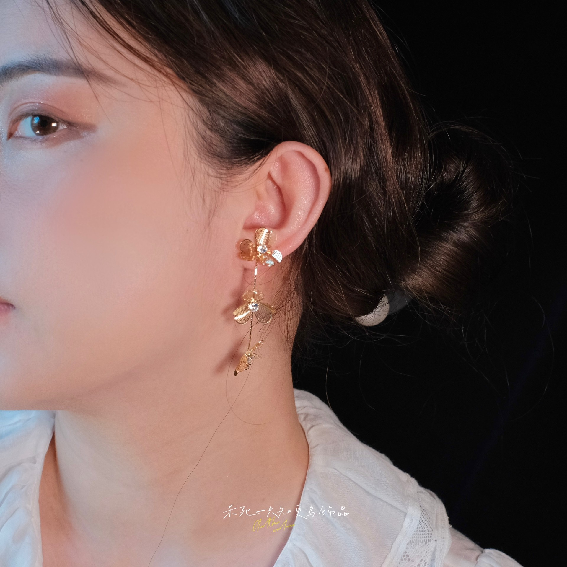 《彼岸花》复古优雅夸张世贸金银花朵镂空长款流苏耳环耳夹耳饰女