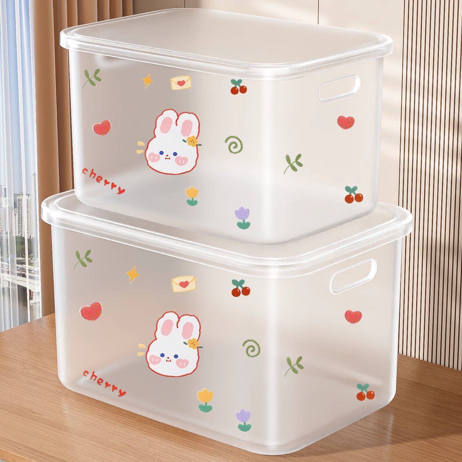 桌面收纳盒零食杂物塑料玩具整理筐家用长方形带盖收纳箱储物盒