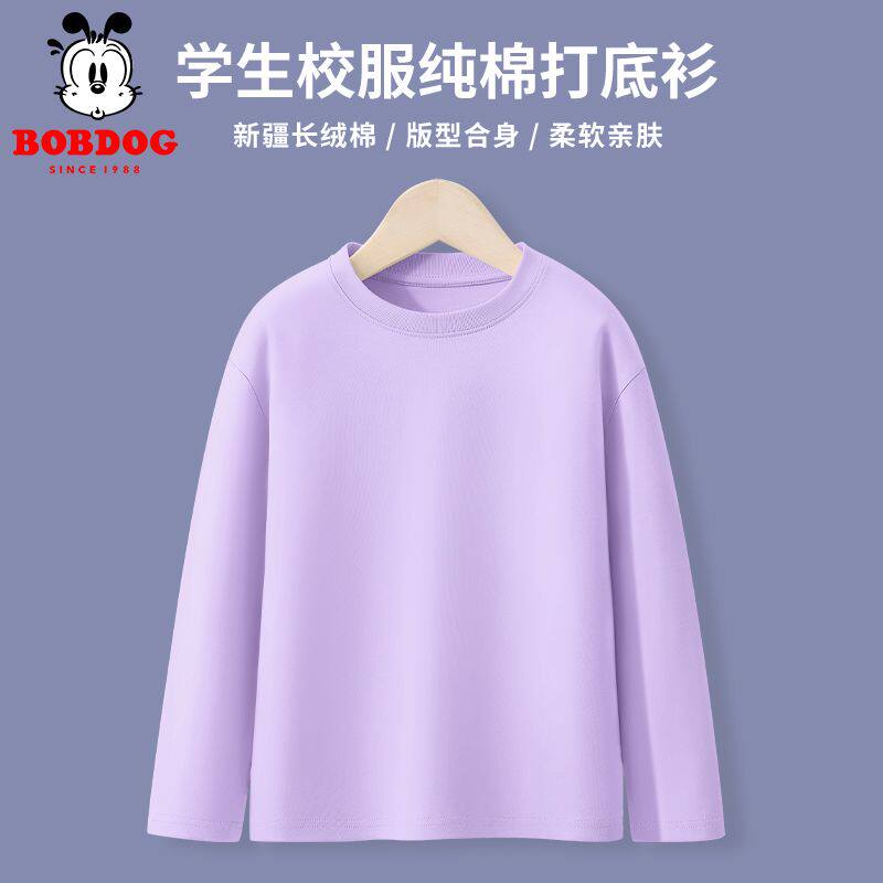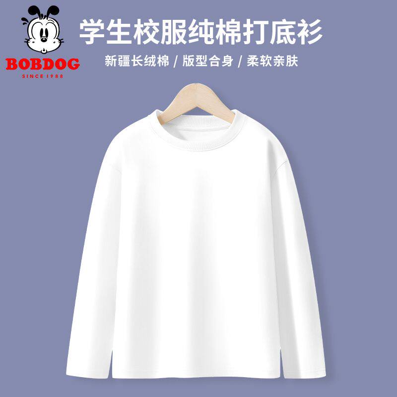 巴布豆儿童长袖t恤纯棉春秋款2026新款男女童内搭学生校服打底衫