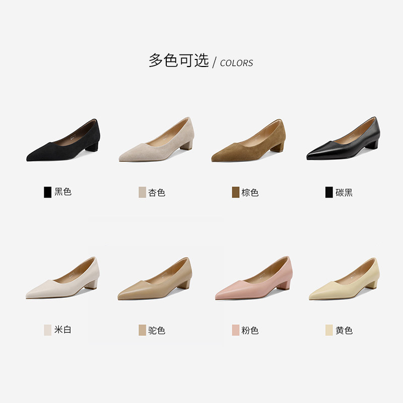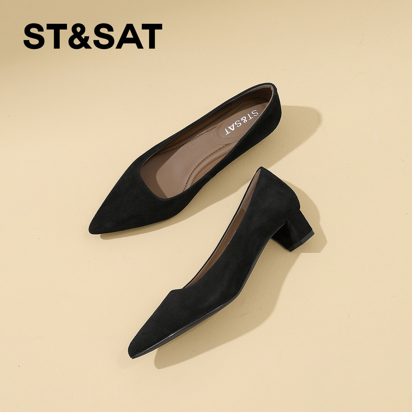 星期六真皮通勤风尖头粗跟浅口单鞋女2026春季新款洋气中跟时装鞋