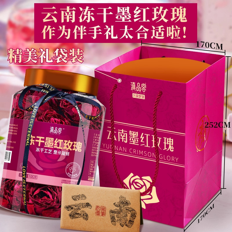 滇品客云南墨红玫瑰花茶可食用干玫瑰花冠大朵冻干重瓣茶罐装泡水