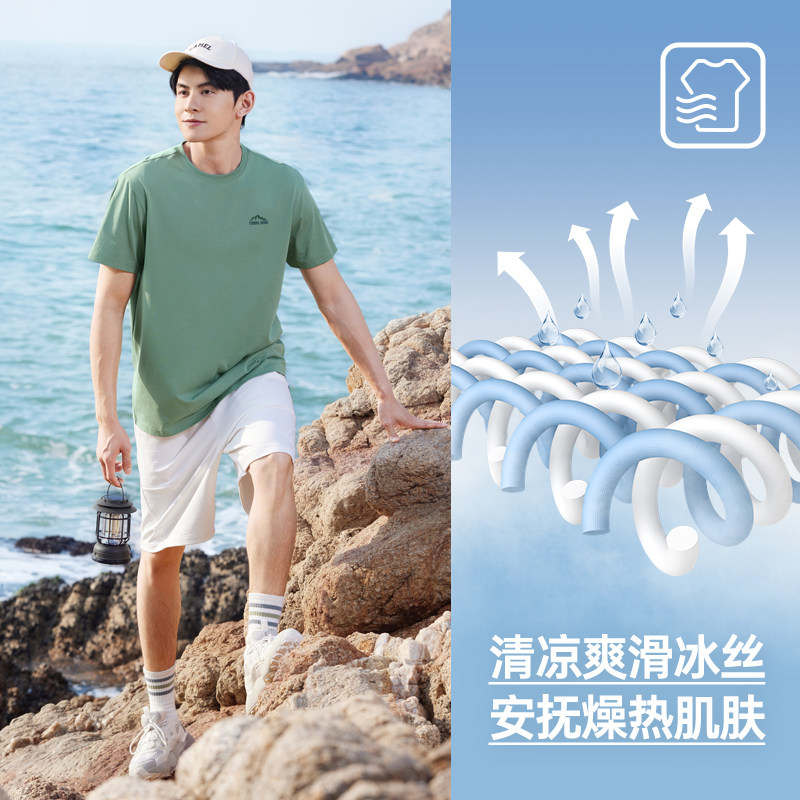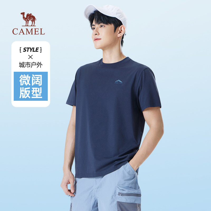 骆驼男装索罗娜凉感短袖t恤男春夏季2025新款速干宽松半袖体恤男