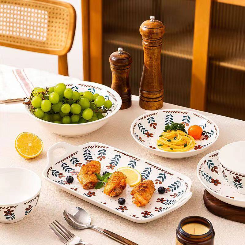 奶油风陶瓷碗家用卡通菜盘子可爱米饭碗汤碗釉下彩儿童餐具耐高温