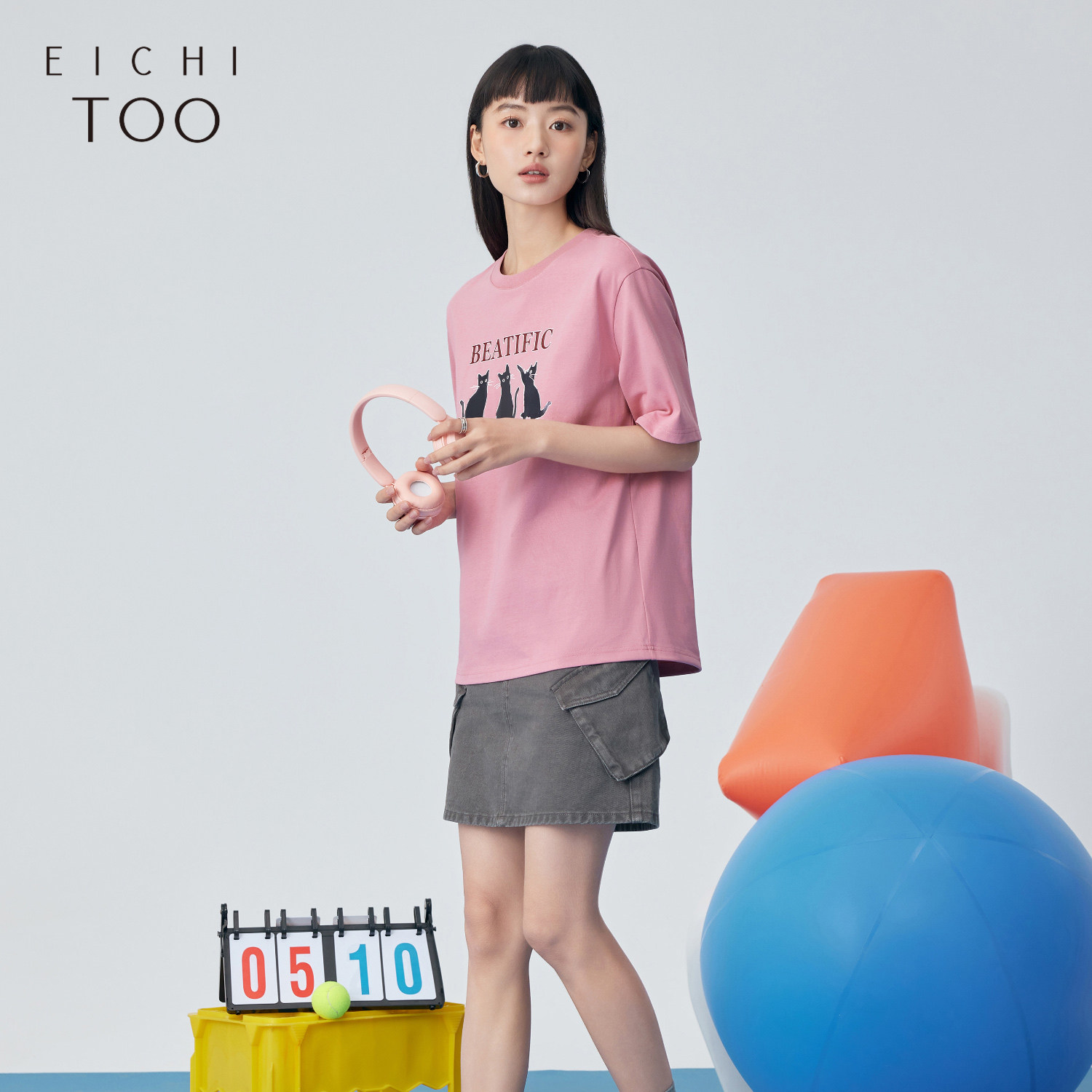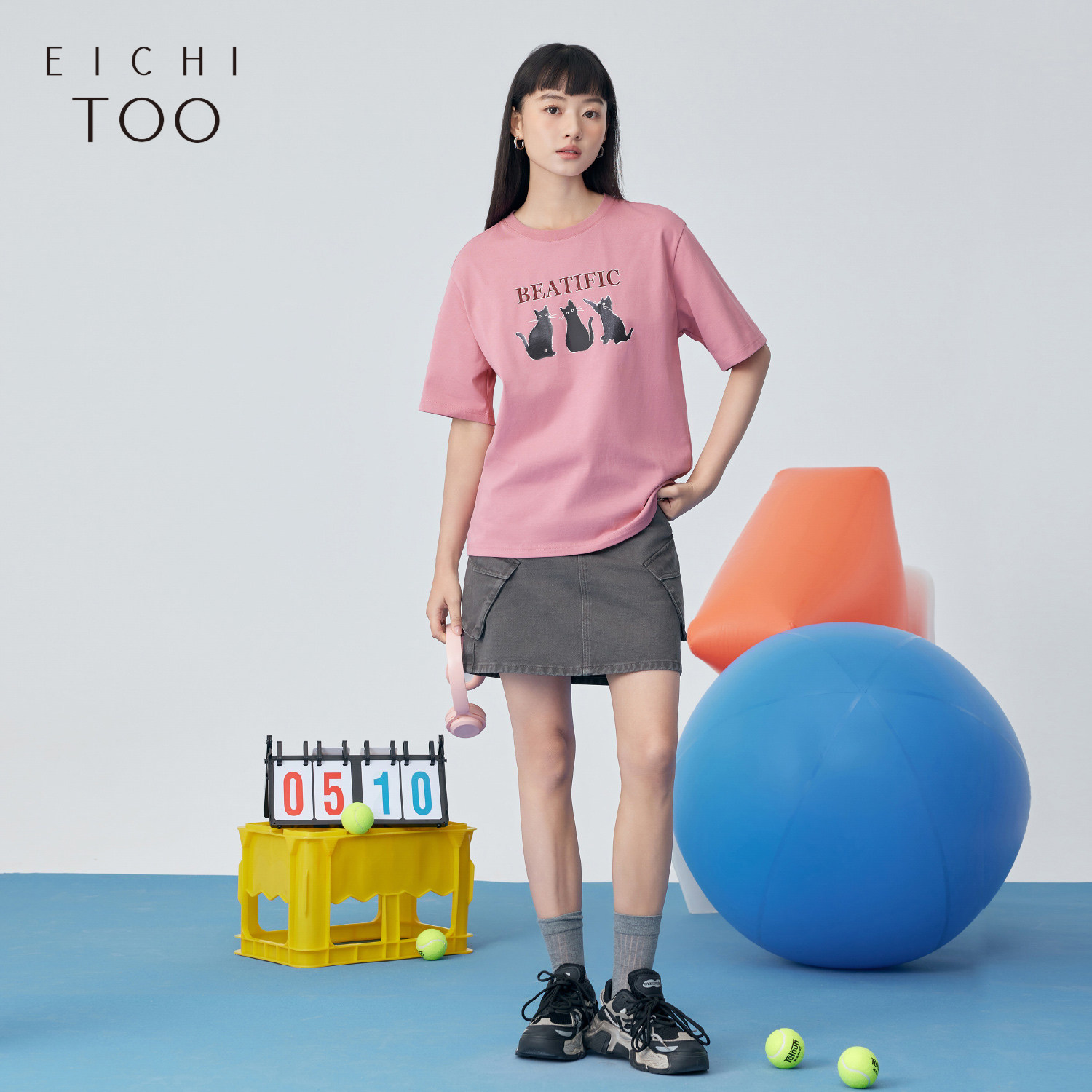 蒲熠星同款LOGICAT 猫咪皮标印花T恤春夏男女同款情侣短袖