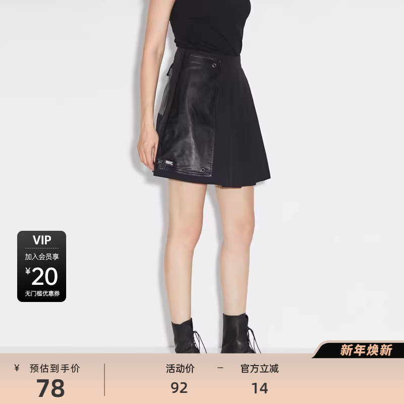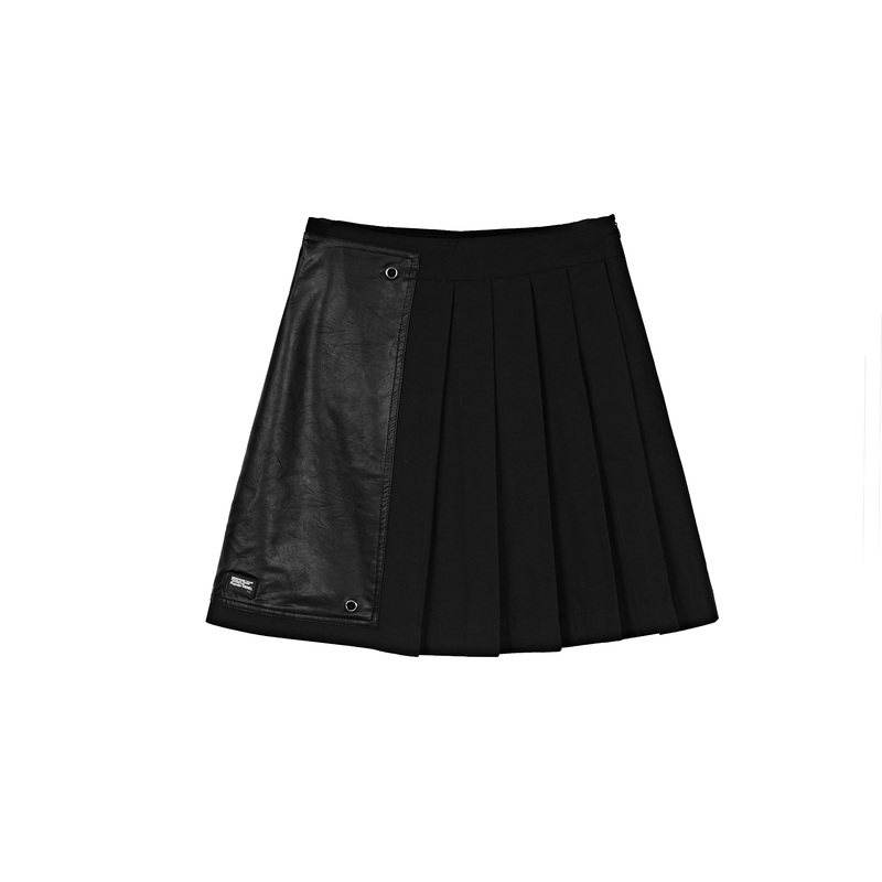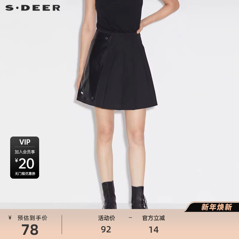 sdeer圣迪奥女装个性字母胶印皮质拼接A字百褶短裙S21381302