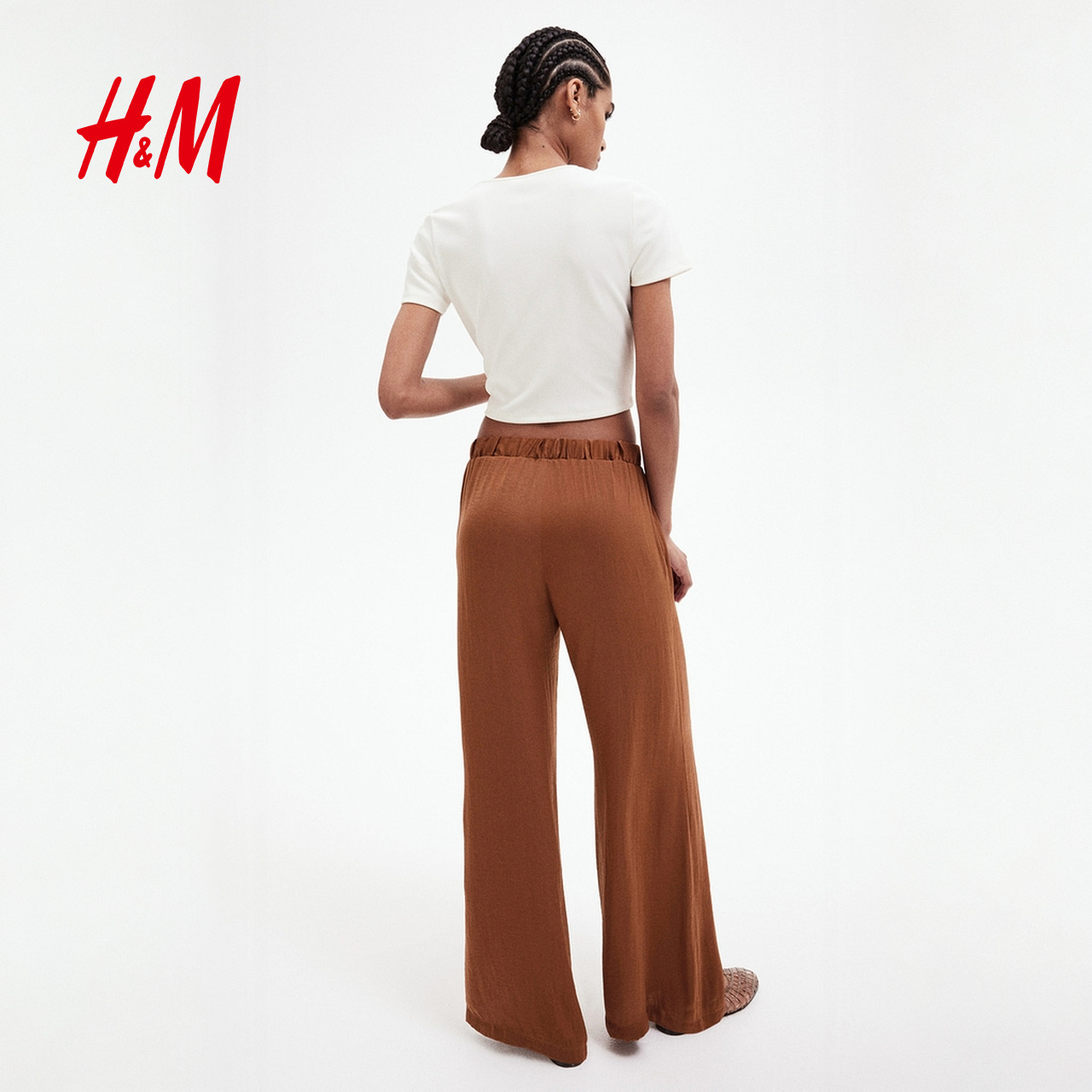 HM女装休闲裤春季时尚潮流柔软气质抽绳阔腿裤1262105