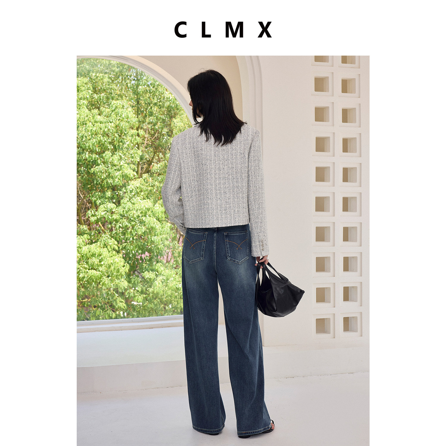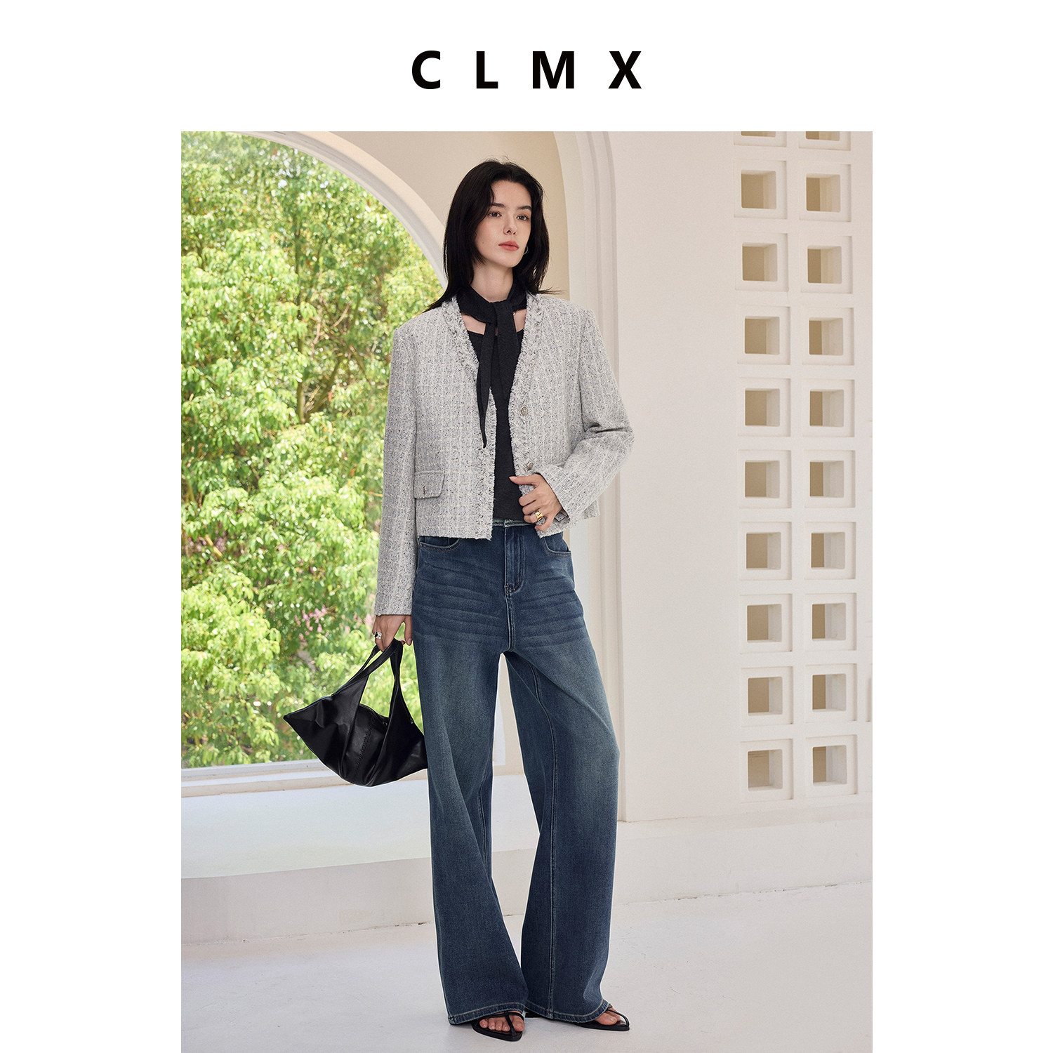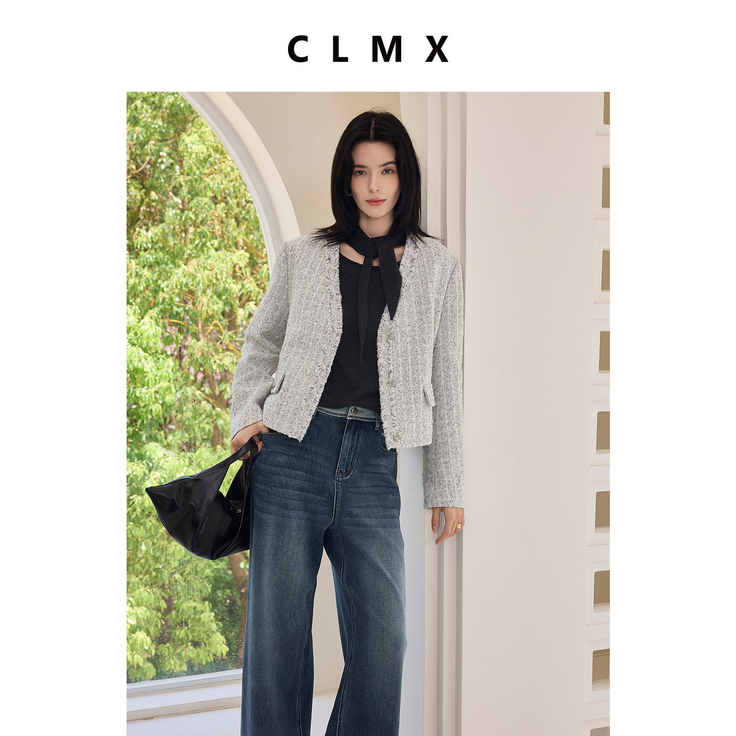 CLMX毛边瀑布流苏V领廓形小香外套亲肤羊毛花纱面料通勤上衣女