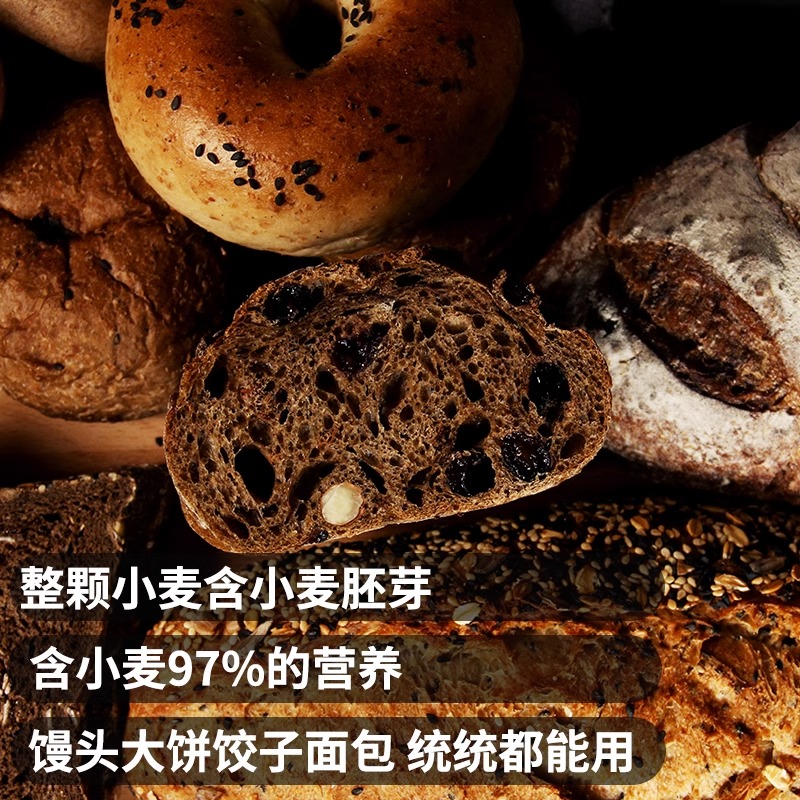 黑全麦面粉石磨黑麦粉纯黑小麦面包家用荞麦0低筋高筋麦麸面条
