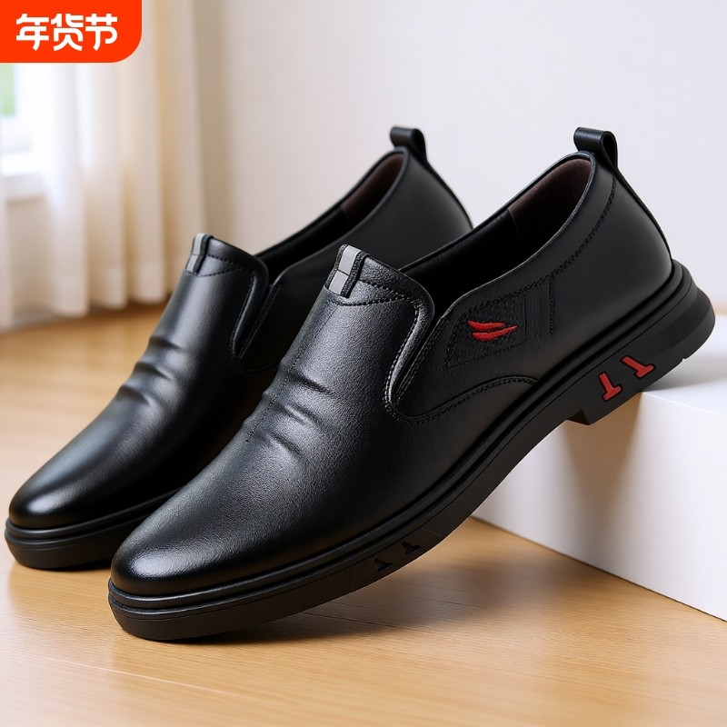 男士皮鞋男款真皮2025新款商务正装潮流黑色软底透气百搭休闲鞋子