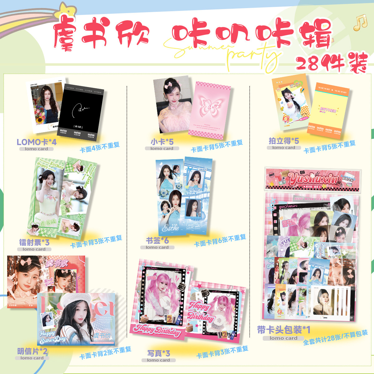 虞书欣周边28件咔叽卡辑小卡拍立得LOMO卡明信片写真镭射票小石榴