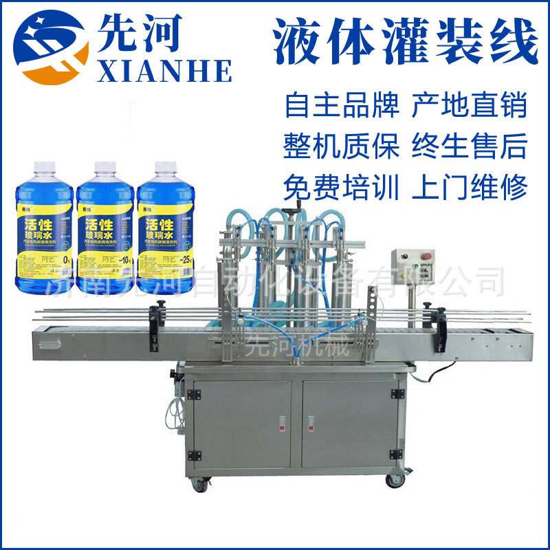 供应全自动瓶装玻璃水润滑油防冻液灌装包装流水线饮料液体灌装机
