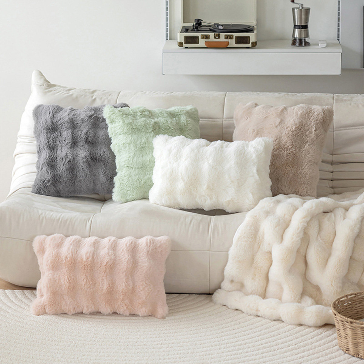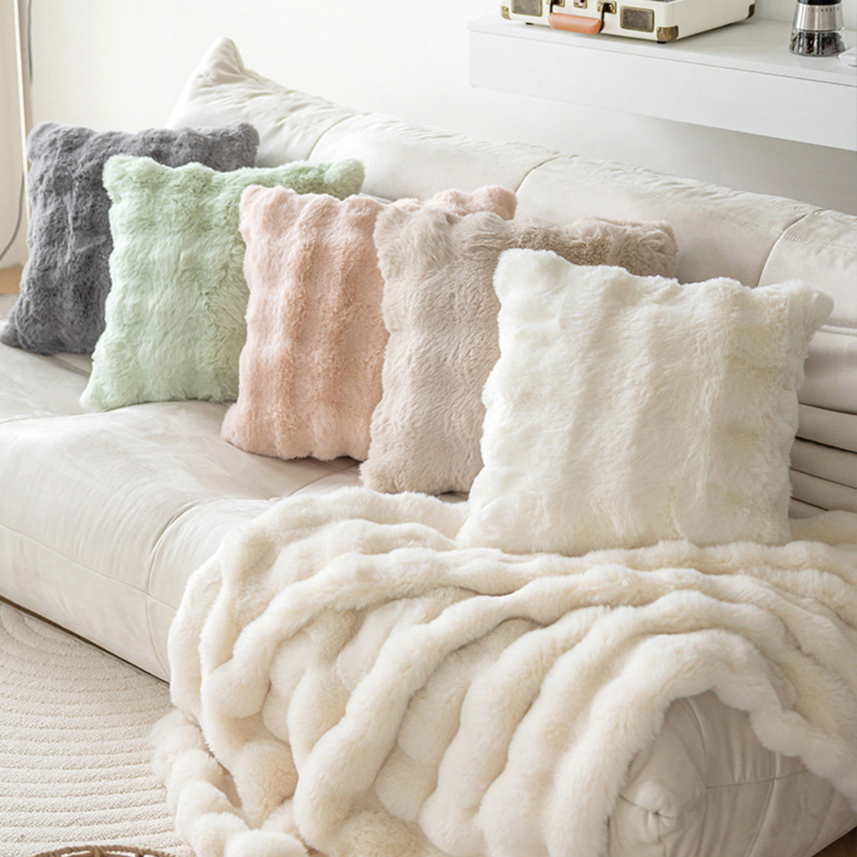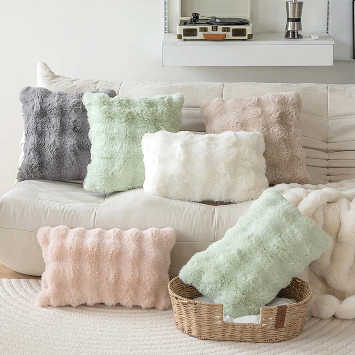 撸猫感毛绒抱枕沙发客厅靠枕兔毛抱枕套轻奢高级睡觉靠垫飘窗摆件