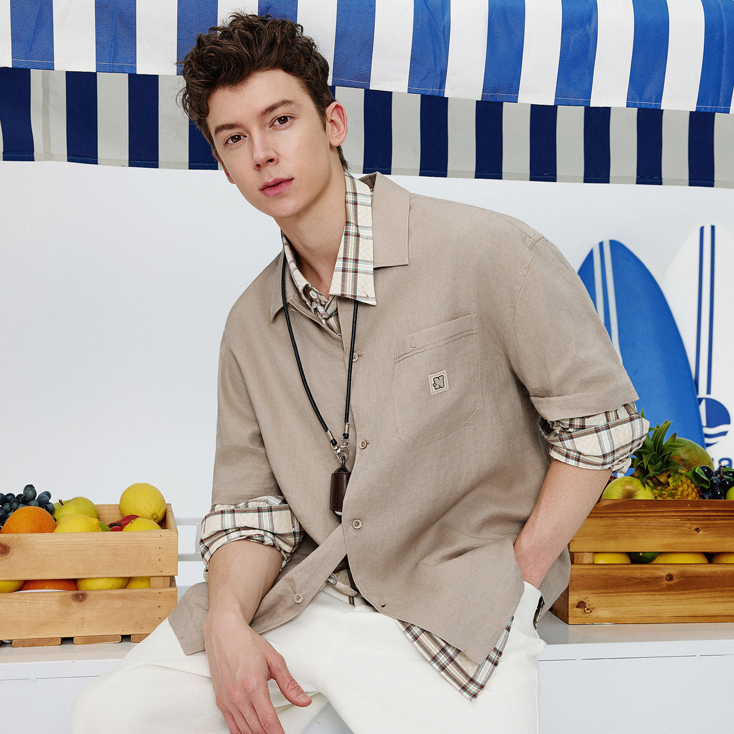 [100%亚麻]Navigare意大利小帆船短袖衬衣男2026夏季翻领衬衫外套