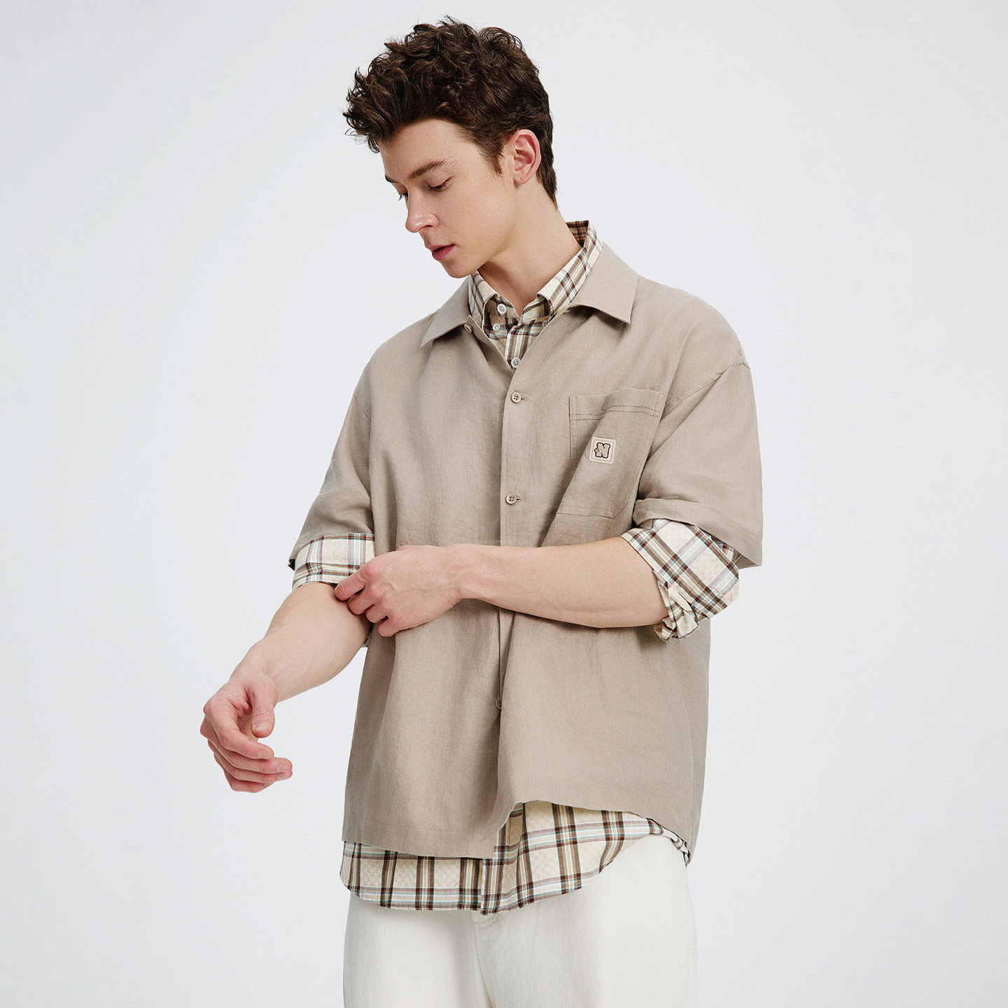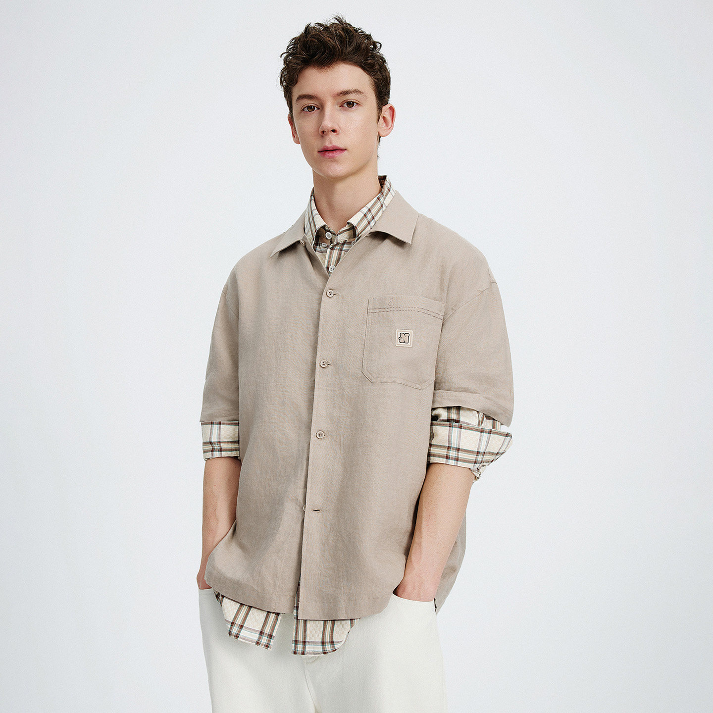 王安宇同款森马长袖衬衫男纯棉2025春秋新款通勤休闲上衣商务衬衣