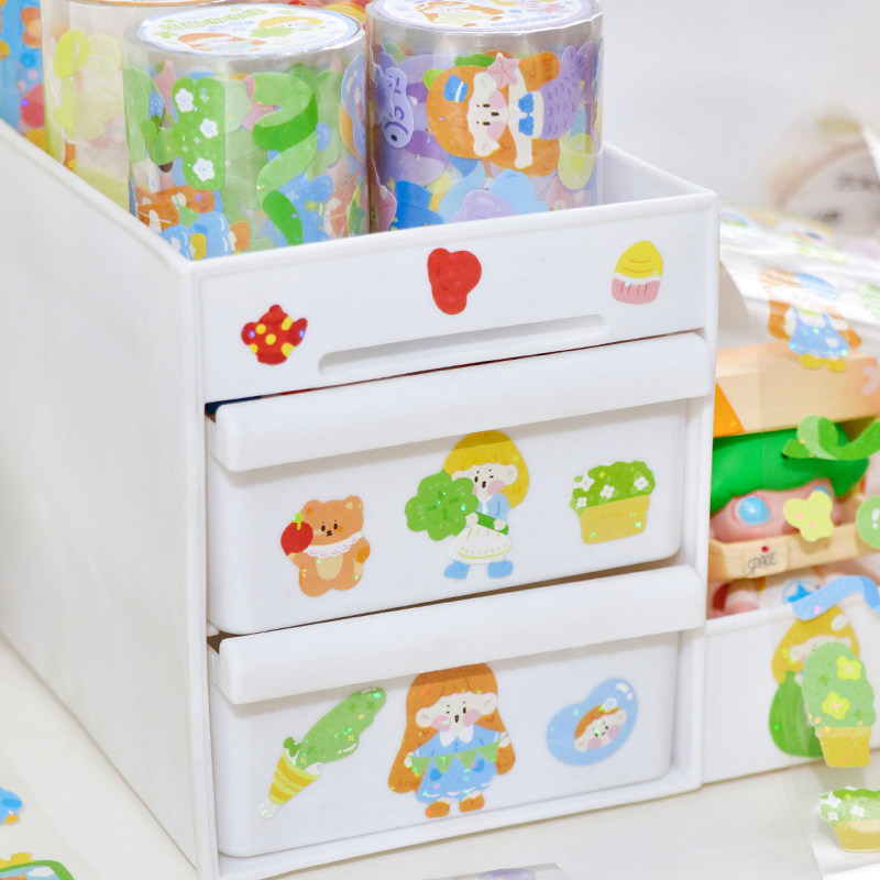 清楚ins可爱卡通动物儿童手帐胶带贴纸自粘手账diy手机壳装饰素材